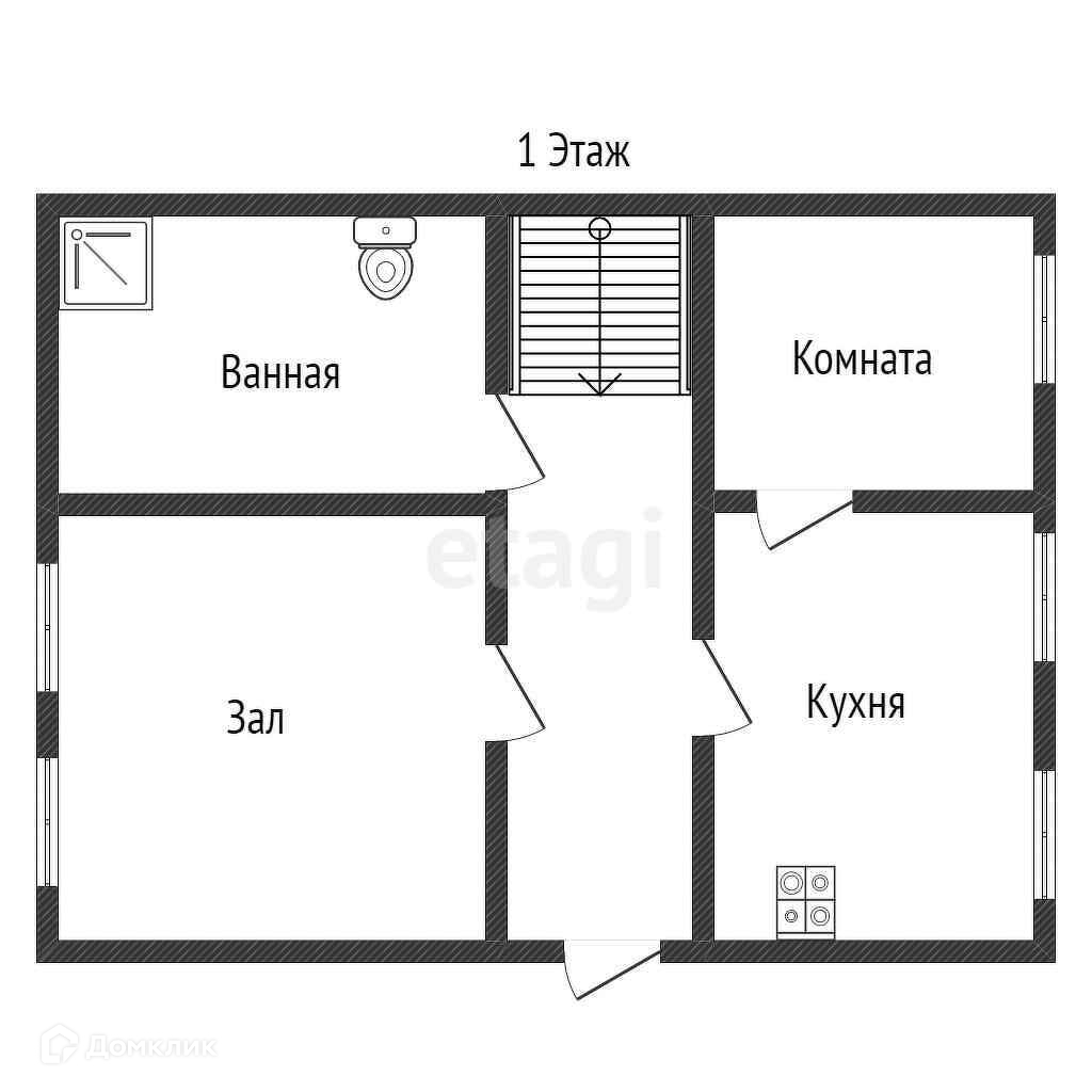 На 1-ом этаже находятся 2 комнаты, большая кухня,