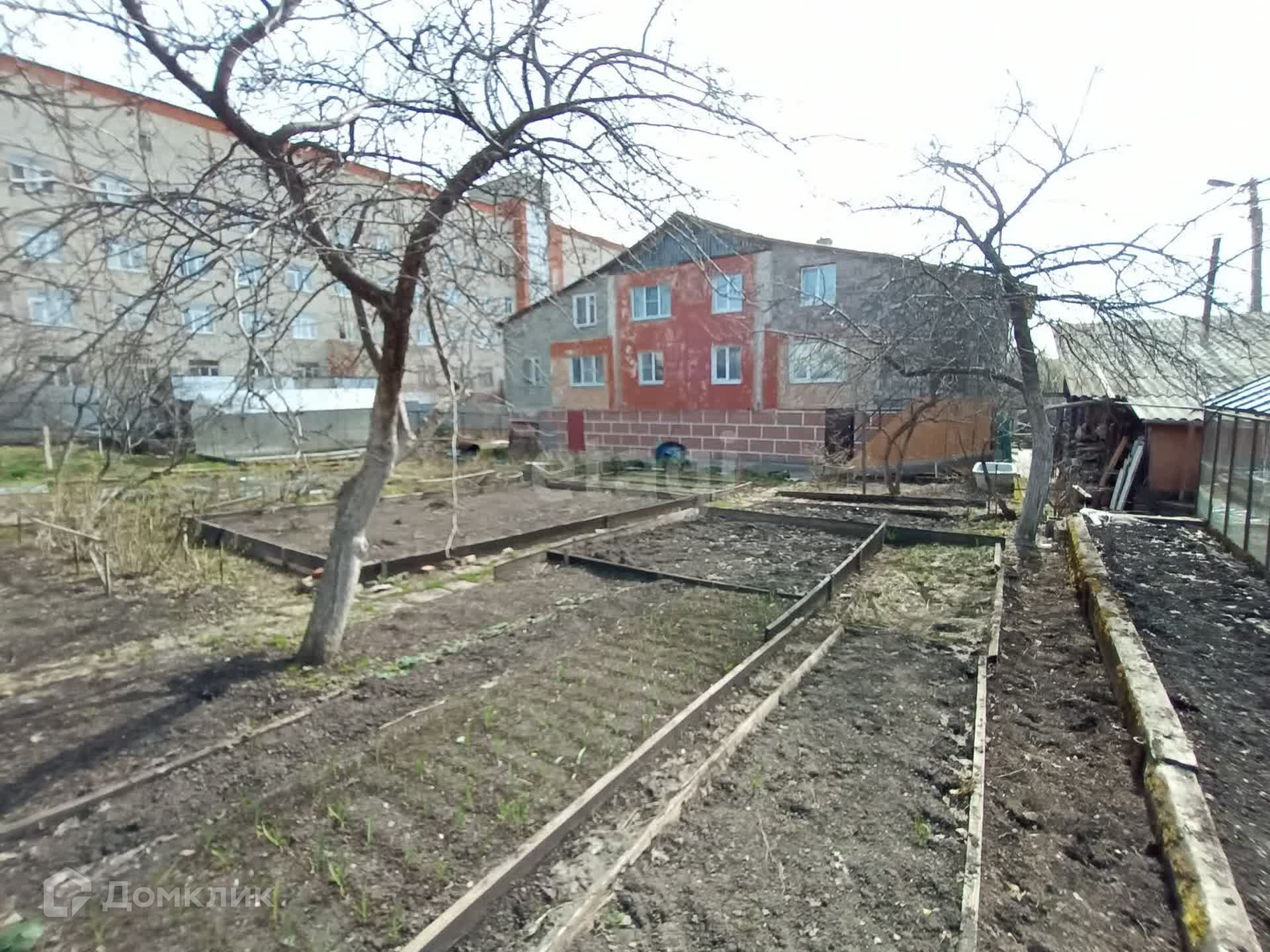 Приусадебный участок с двумя теплицами (стекло, поликарбонат), баня с дровником, большой двор.