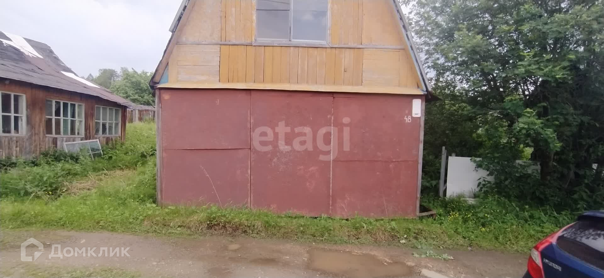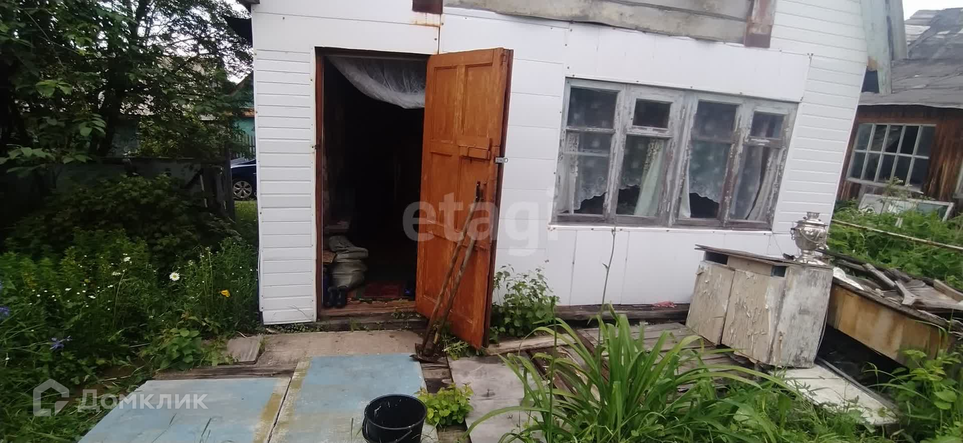 На участке расположен двухэтажный деревянный дом площадью 30 кв.м, с двумя уютными комнатами. Дача обогревается хорошей печью, что позволяет комфортно проводить время в любое время года. В доме оставляются кровати, напольные покрытия, холодильник, мебель.