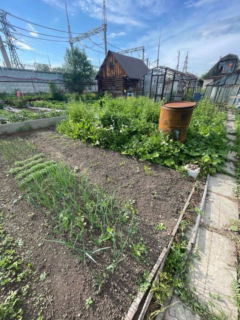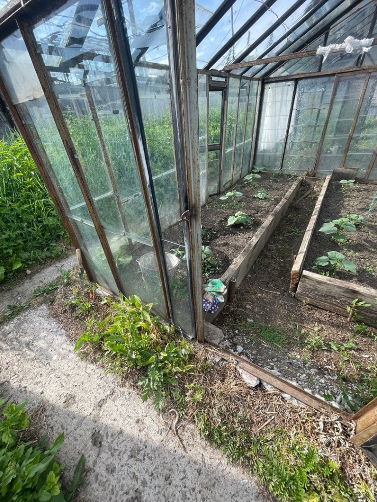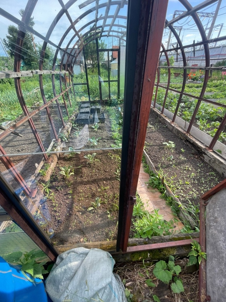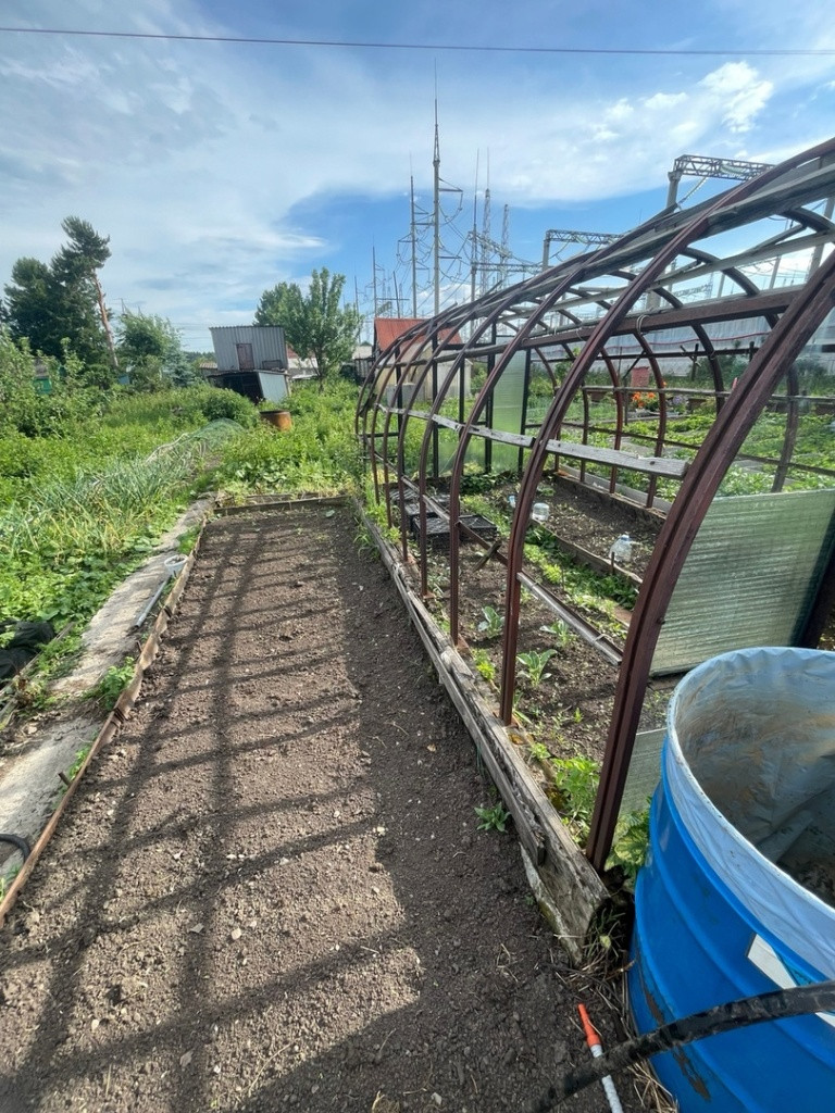 Участок земли ухоженный есть насаждения, две ухоженные теплицы