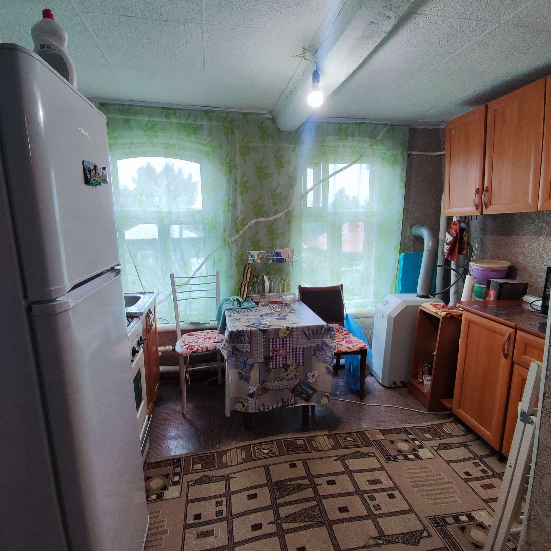 Продается бревенчатый жилой дом с газовым отоплением, три комнаты и кухня, частично сделан косметический ремонт. Дом крепкостоящий, но дом не новый требует вложений и рук! Имеется большой крытый дом, построена баня новая, требует доделок. Отличный подъезд круглый год. Колонка в 3-х домах от нас. Можно завести центральную воду, можно скважину.