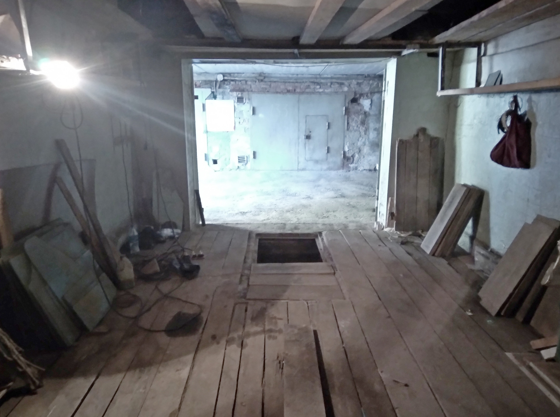 Есть свет, смотровая яма, сухой огромный погреб, крыша не протекает.