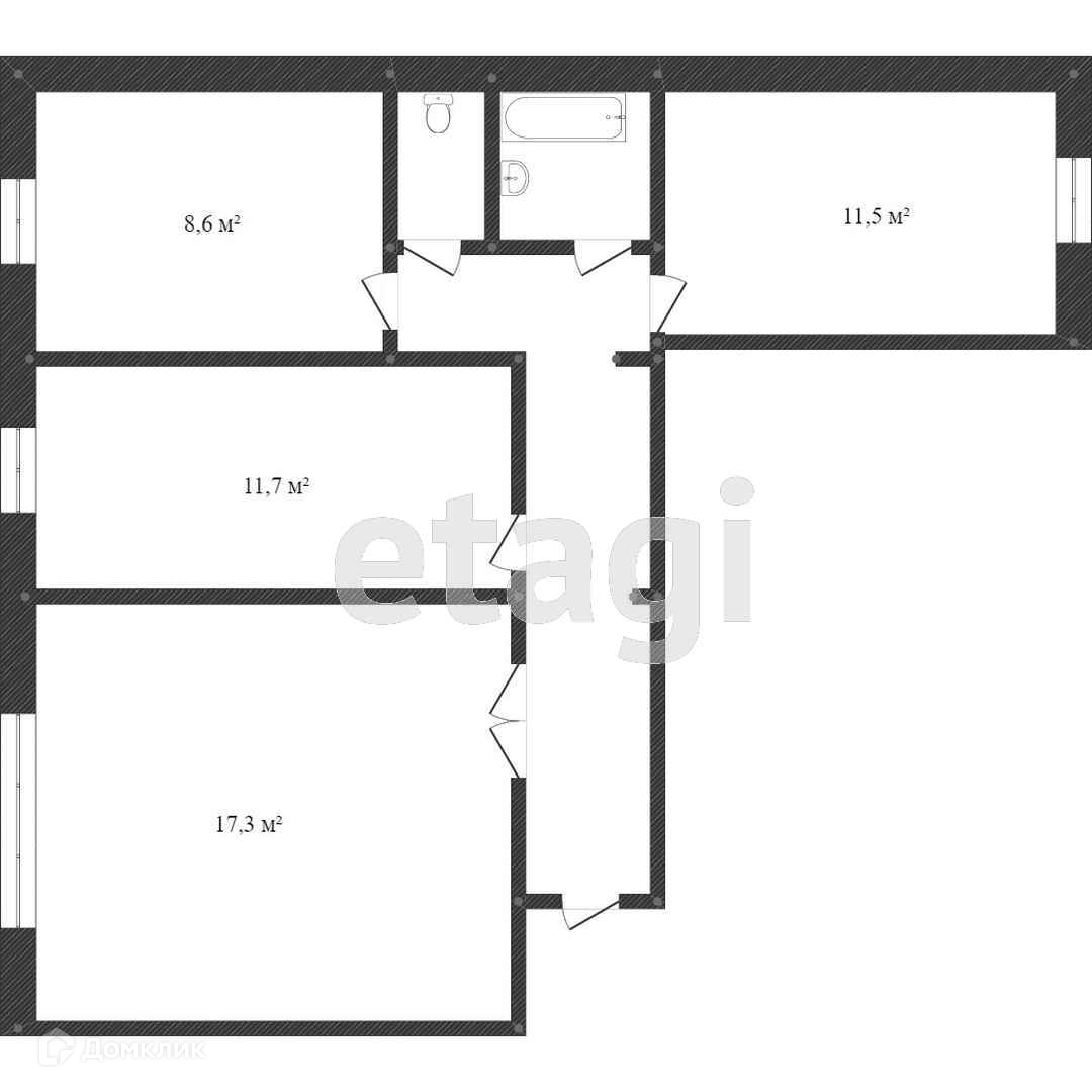 Общая площадь 75.1 м2