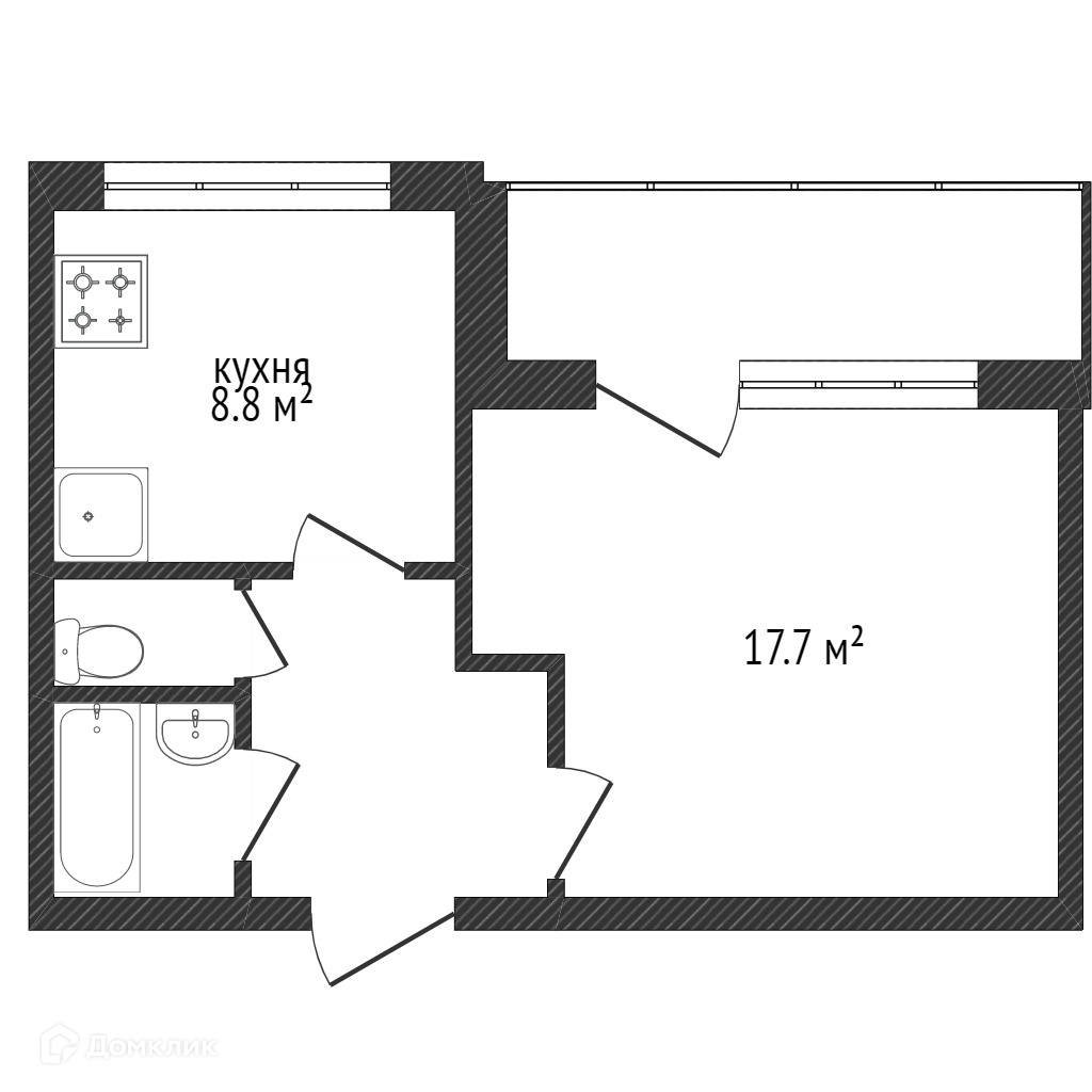 Общая площадь 31.8 м2