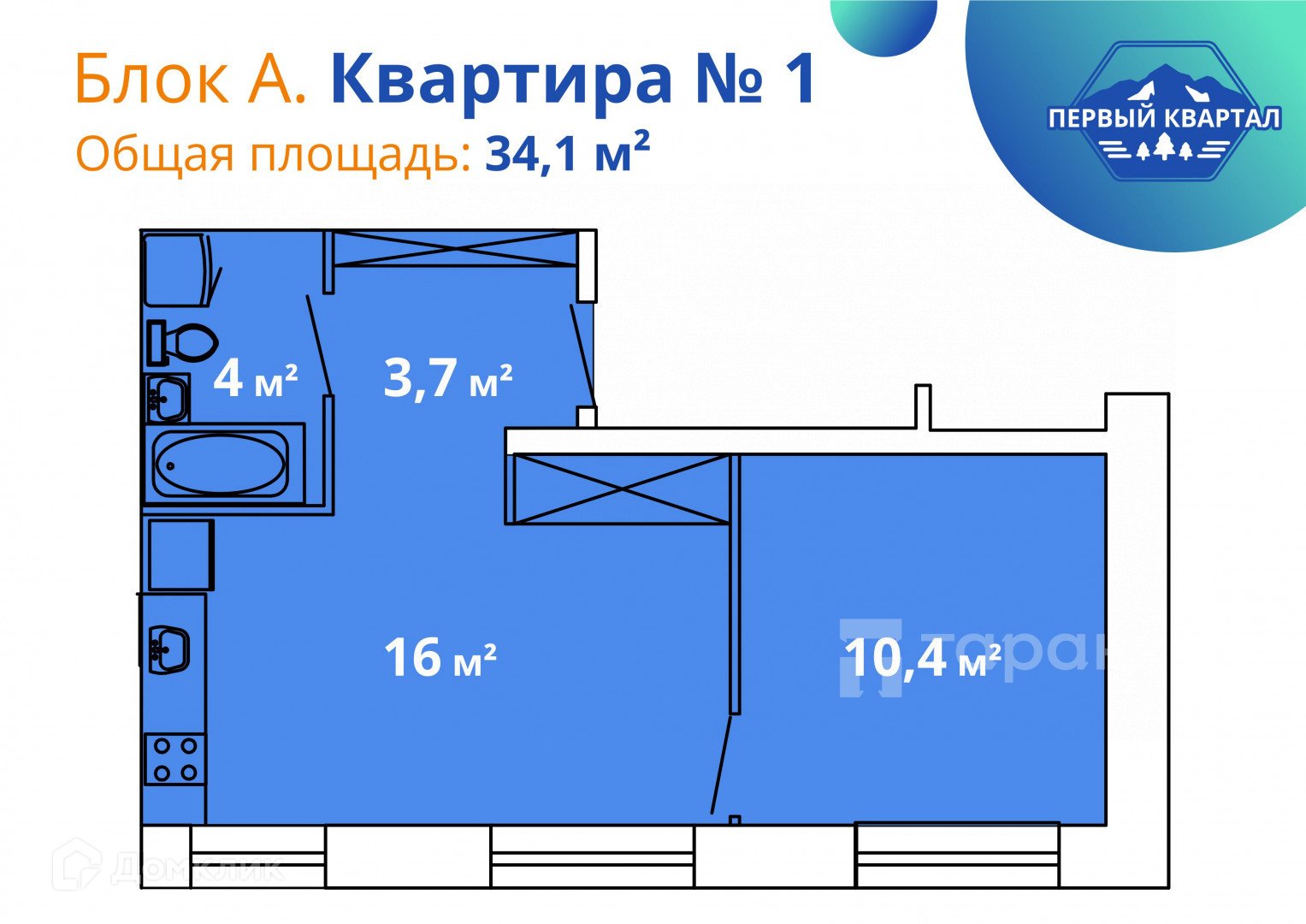 Общая площадь 34.1 м2