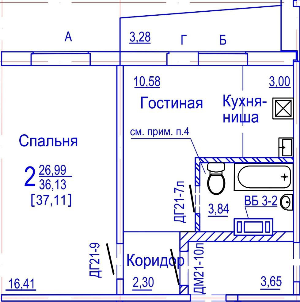 Общая площадь 36 м2