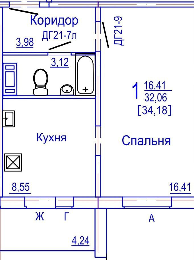 Общая площадь 32 м2