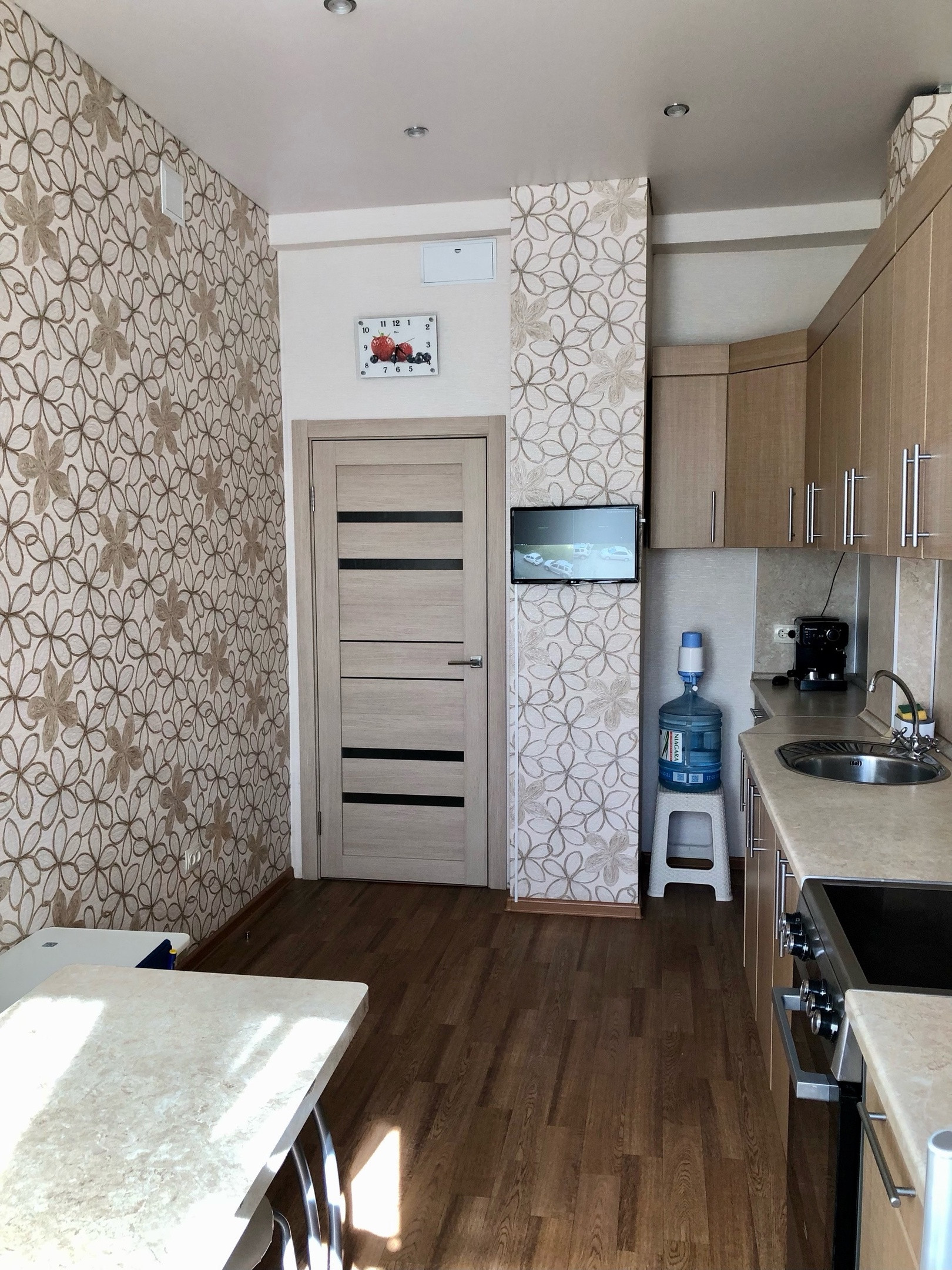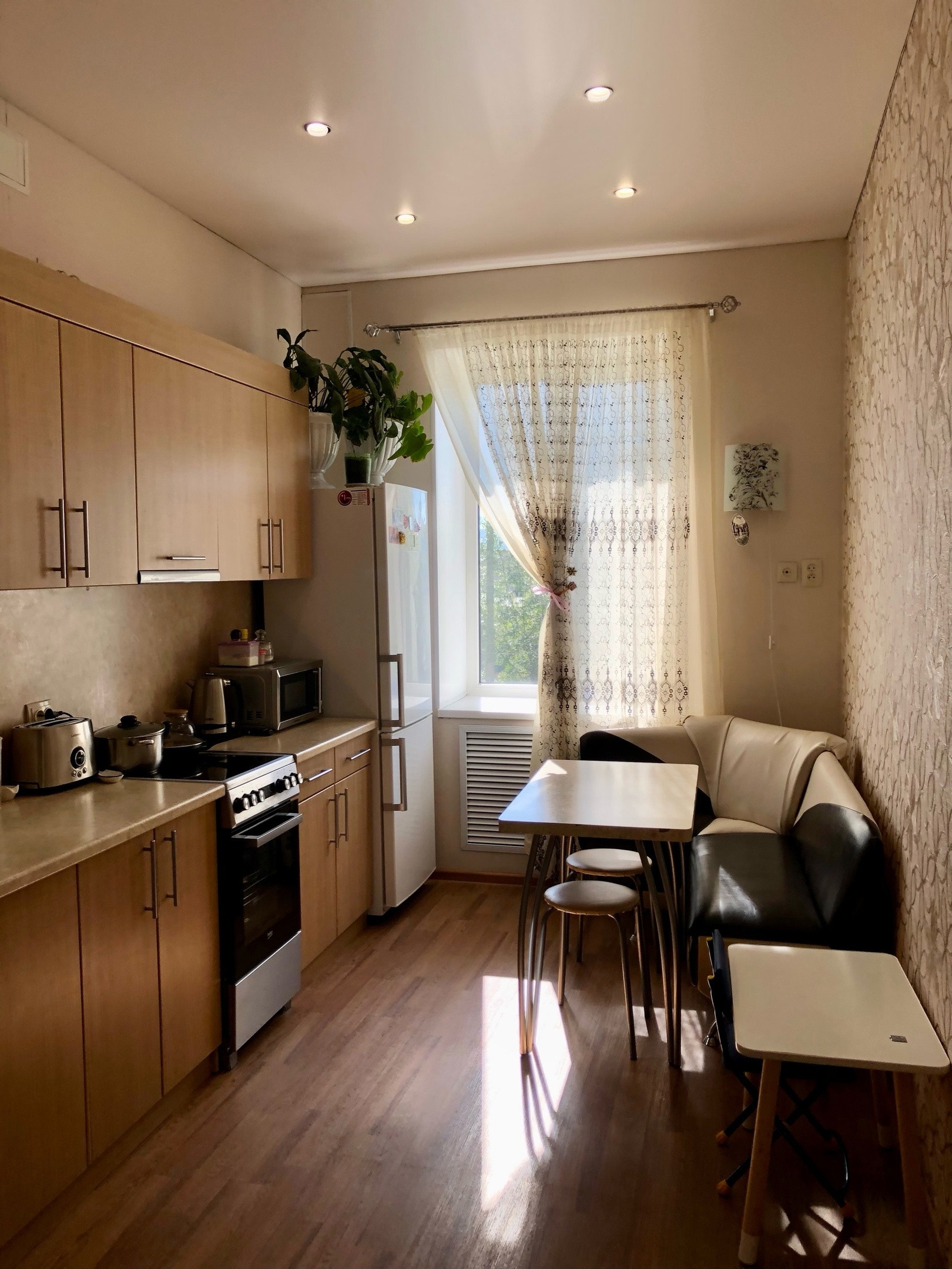 Новому собственнику остаётся кухонный гарнитур, плита, вытяжка.