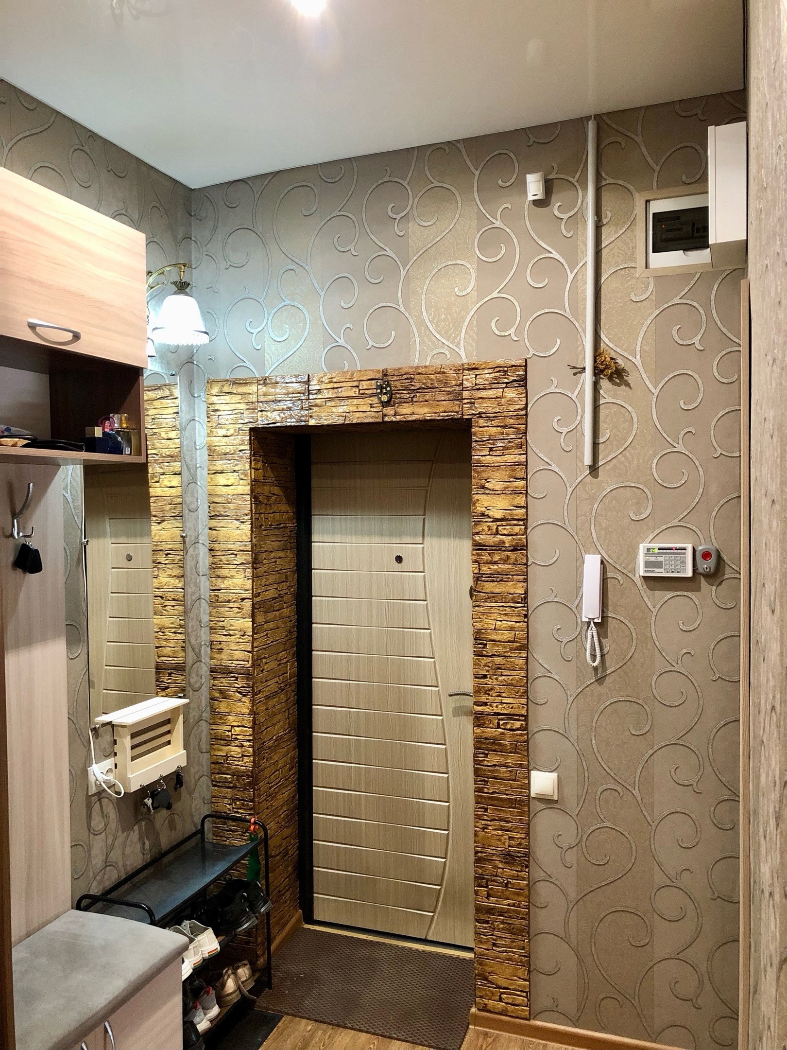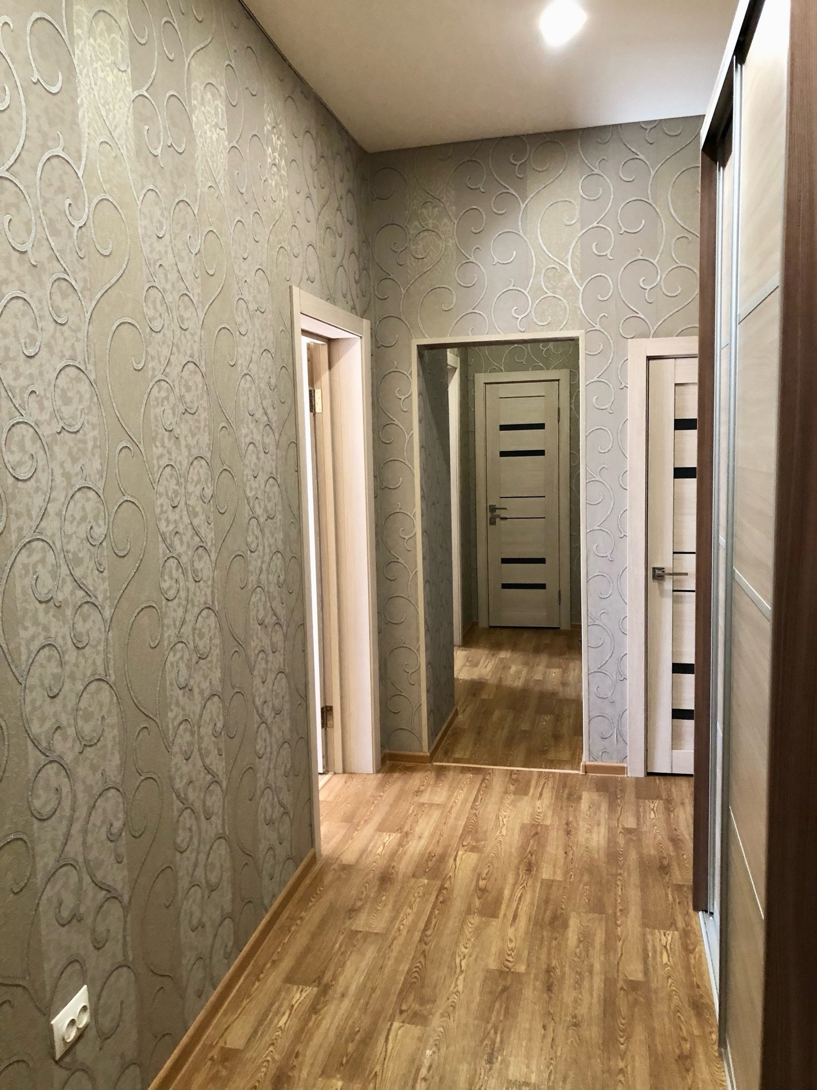По всей квартире заменена электропроводка (медная, установлен электрический счетчик нового образца, автоматические выключатели). Матовый натяжной потолок с хорошим освещением. Покрытие пола линолеум. Заменена система отопления( новые радиаторы отопления). Евро/окна, качественные межкомнатные двери. Санузел раздельный, панели. Заменена сантехника, трубы полипропилен, счётчики учёта воды. Входная дверь усиленная с улучшенной звукоизоляцией Torex. В квартире установлена действующая система охраны. Двор оснащен надёжной системой видеонаблюдения работающей круглый год. Вместительная кладовка-гардеробная.