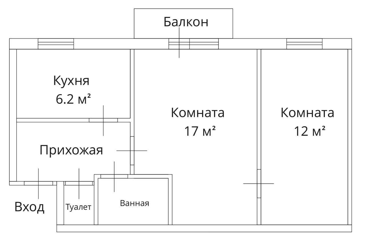 Общая площадь 42.2 м2