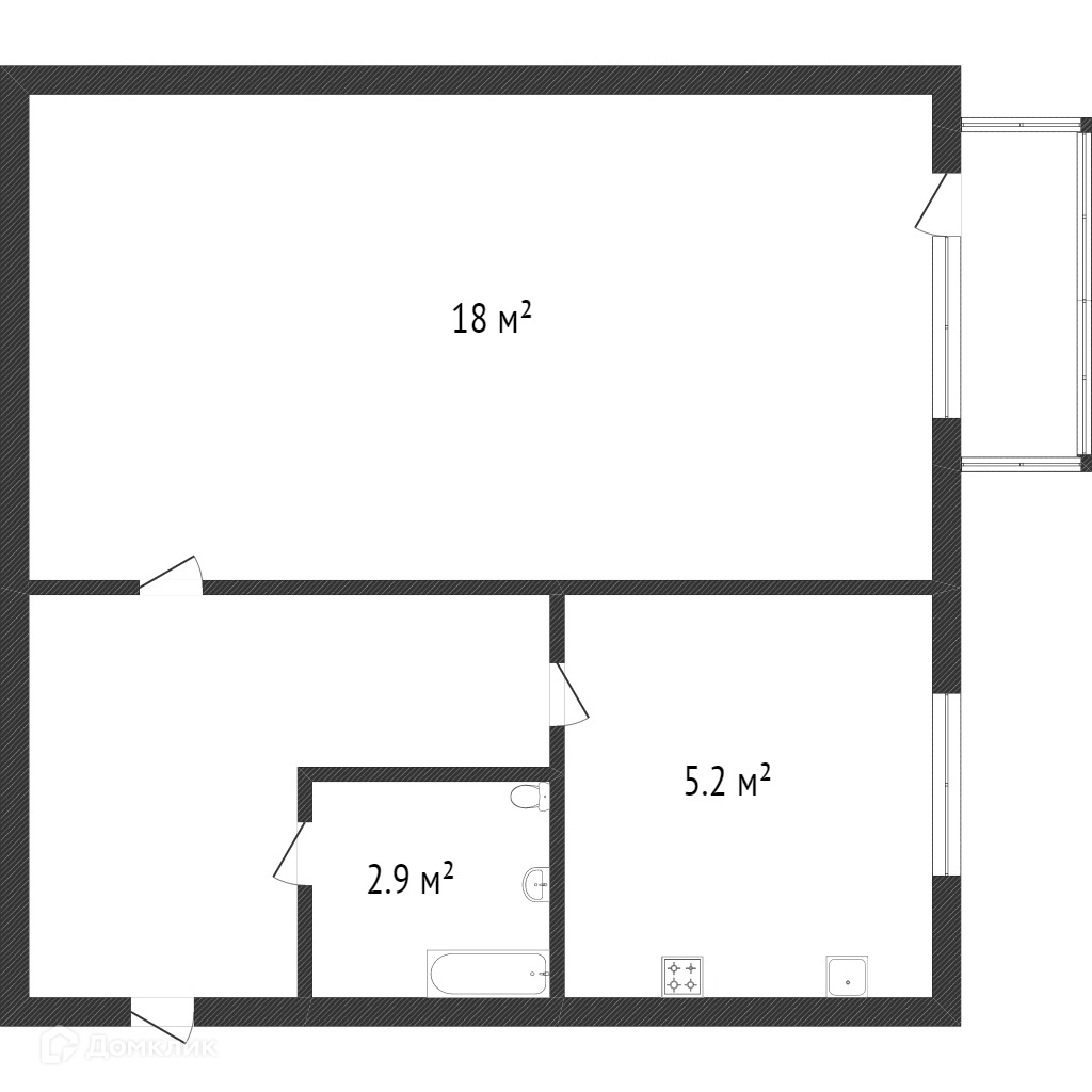 Балкон, лоджия 1 балкон