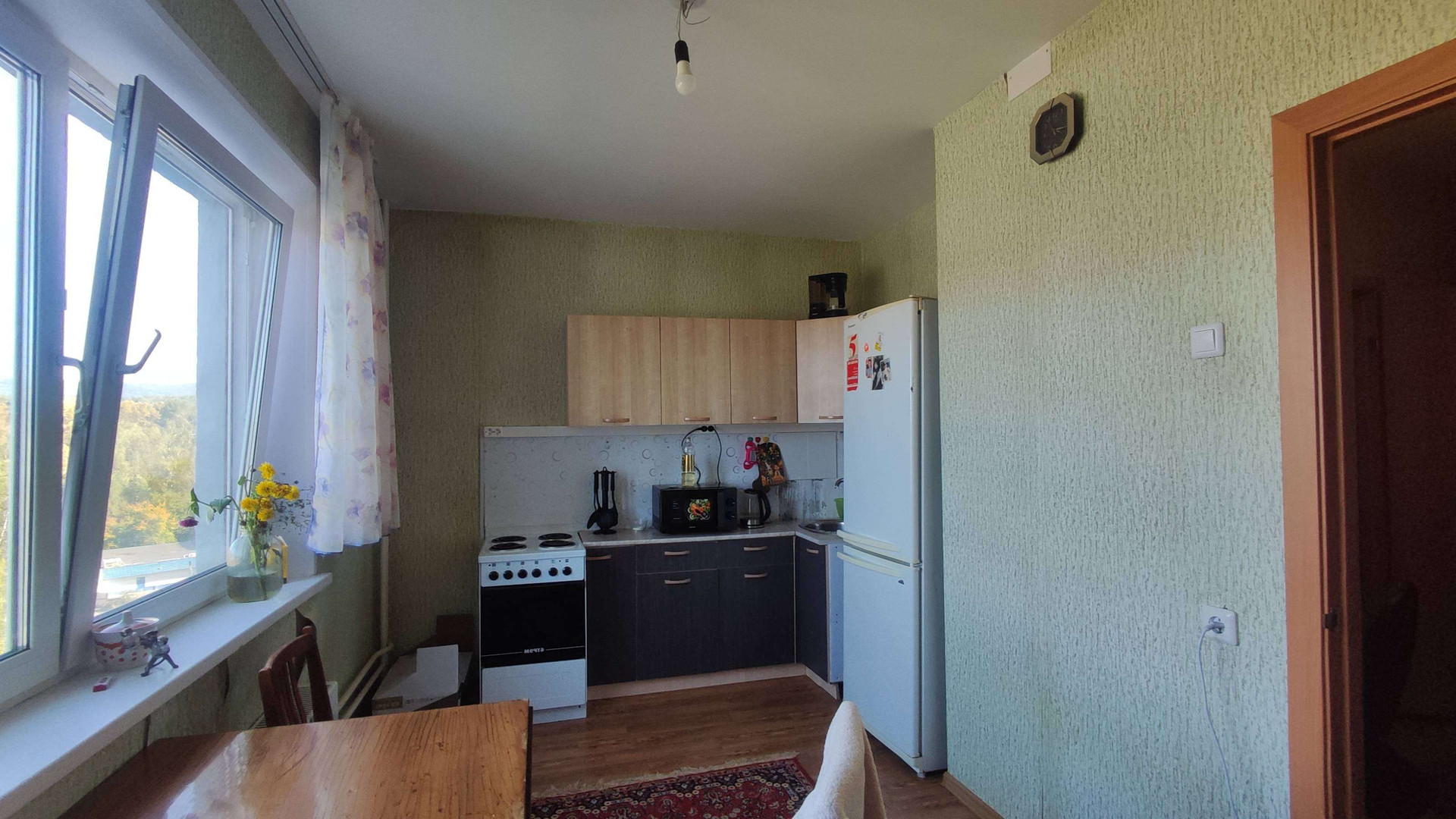 Квартира расположена на девятом этаже десятиэтажного панельного дома, построенного в 2016 году. Из окон открывается прекрасный вид на лес и улицу, что создаёт атмосферу спокойствия и гармонии. Жилая площадь составляет 20 квадратных метров, а кухня занимает 10 квадратных метров, предоставляя достаточно места для кулинарного творчества и семейных ужинов.