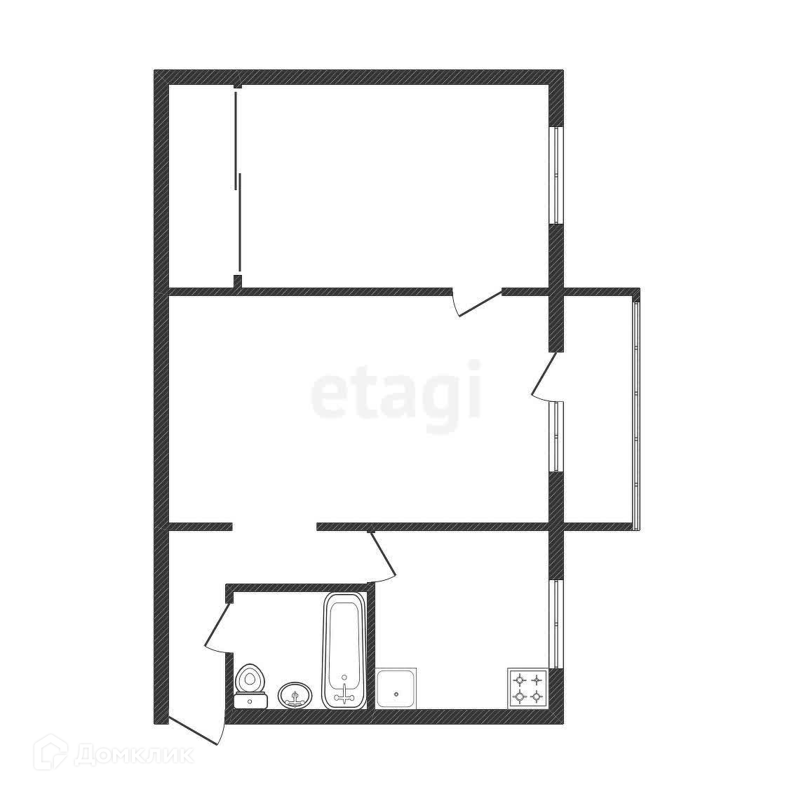 2-комнатная квартира, 43.2 м2, этаж 4 / 5, на продажу в Златоусте, проспект имени Ю.А. Гагарина, 6-я линия, 12