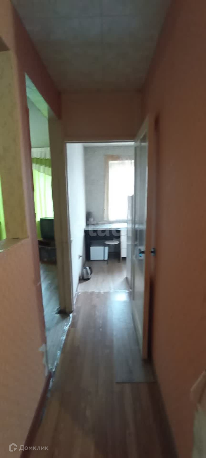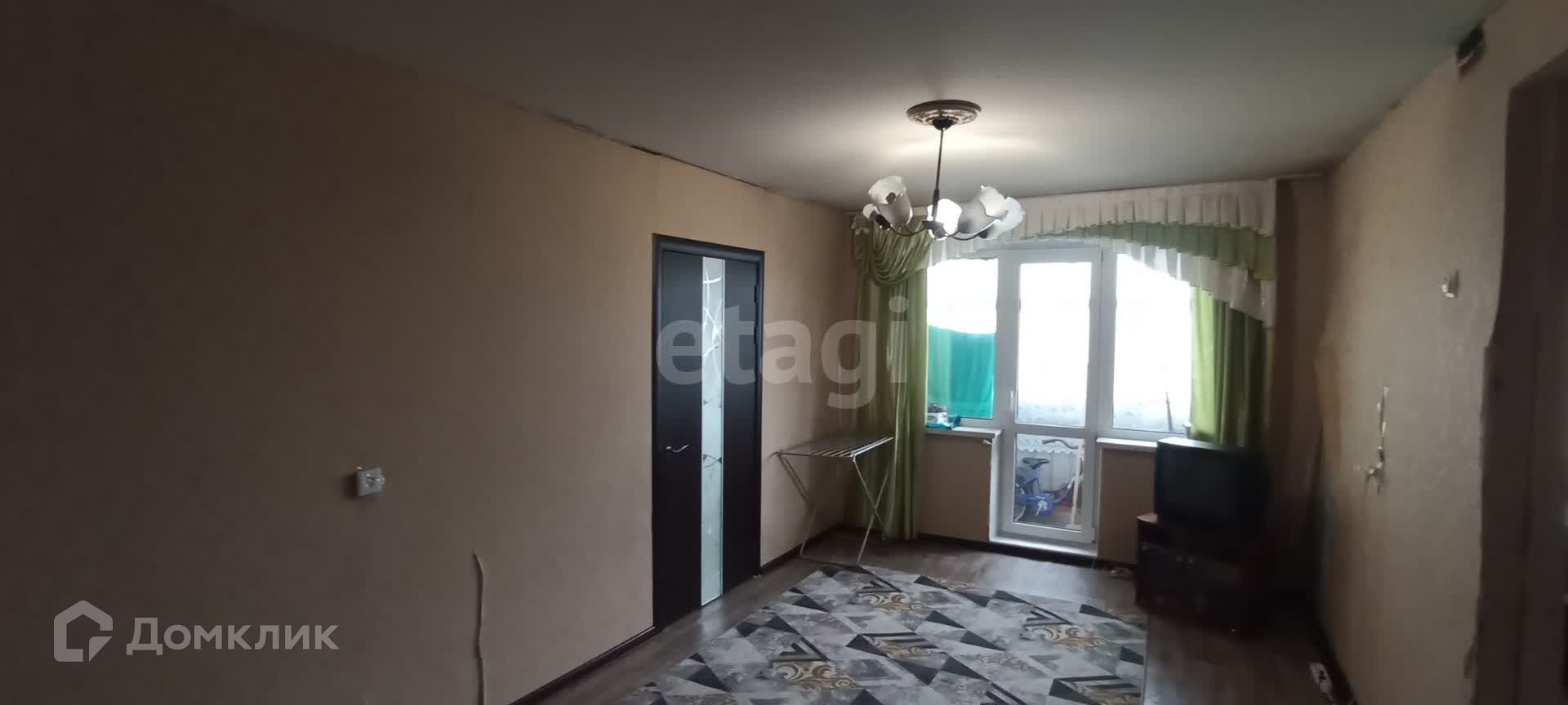 Квартира с косметическим ремонтом, все окна заменены на пластиковые, балкон застеклен деревянными рамами.