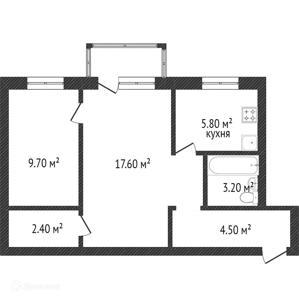 Общая площадь 43.5 м2