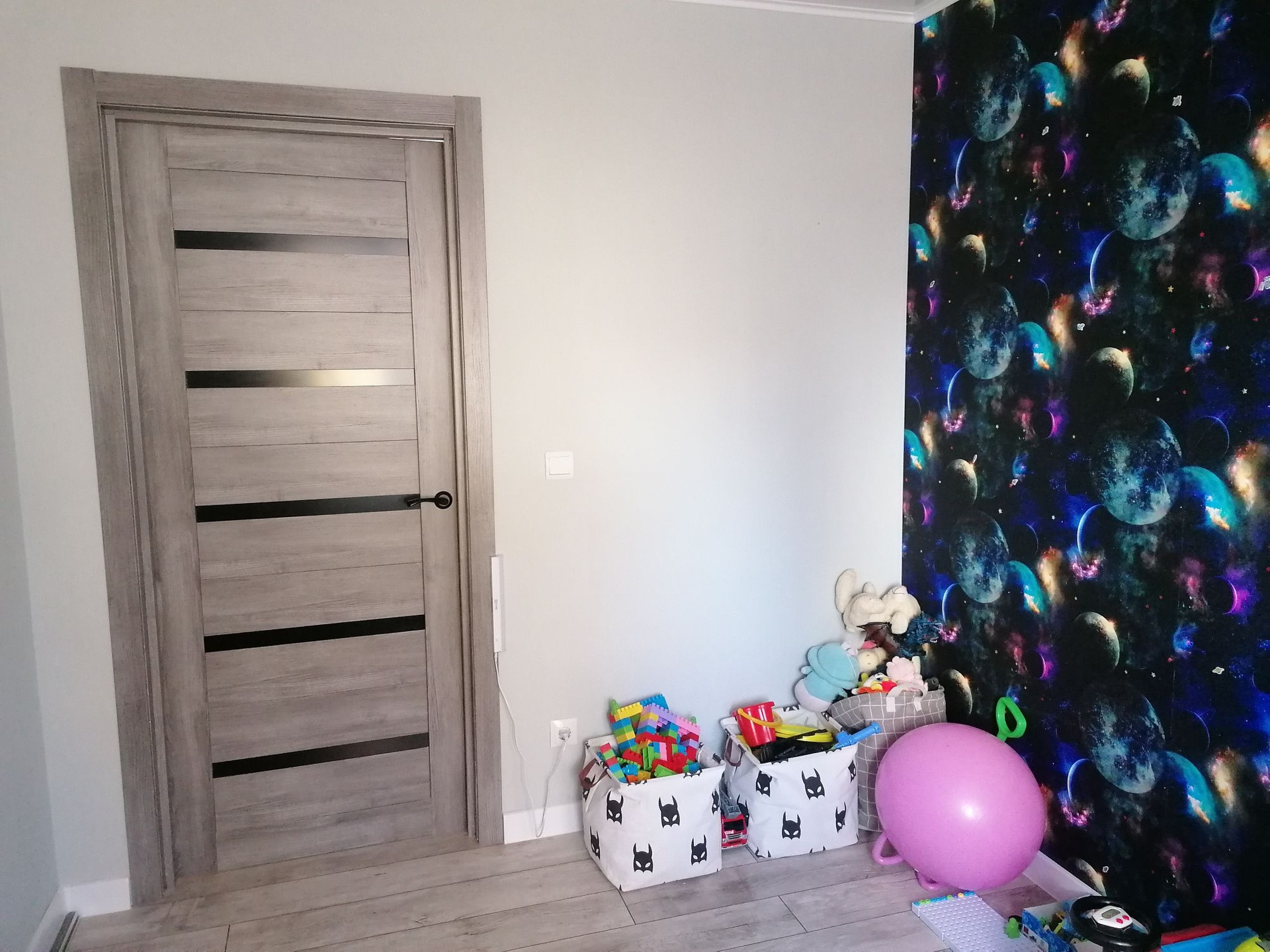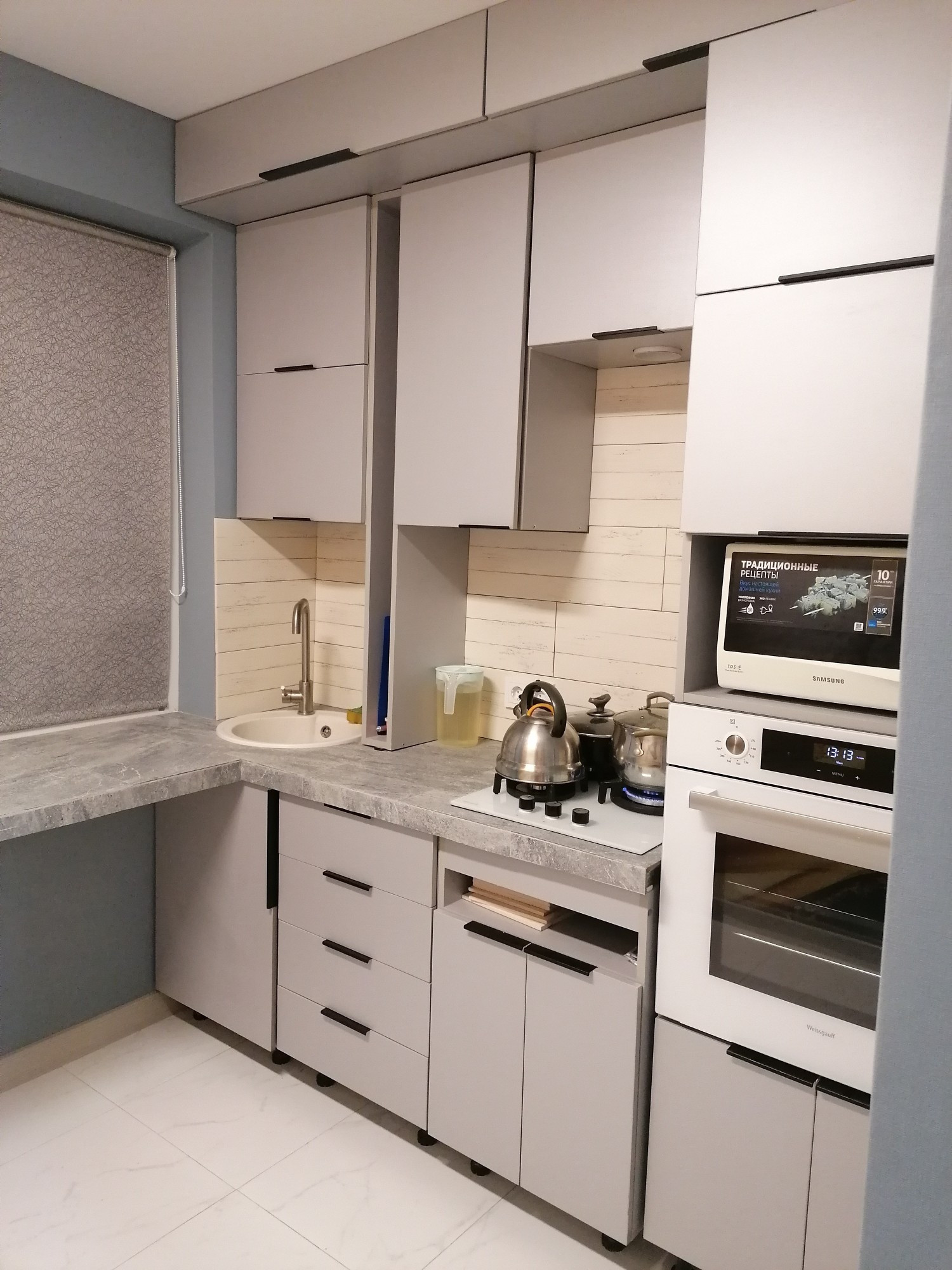 На полу частично плитка, частично ламинат.