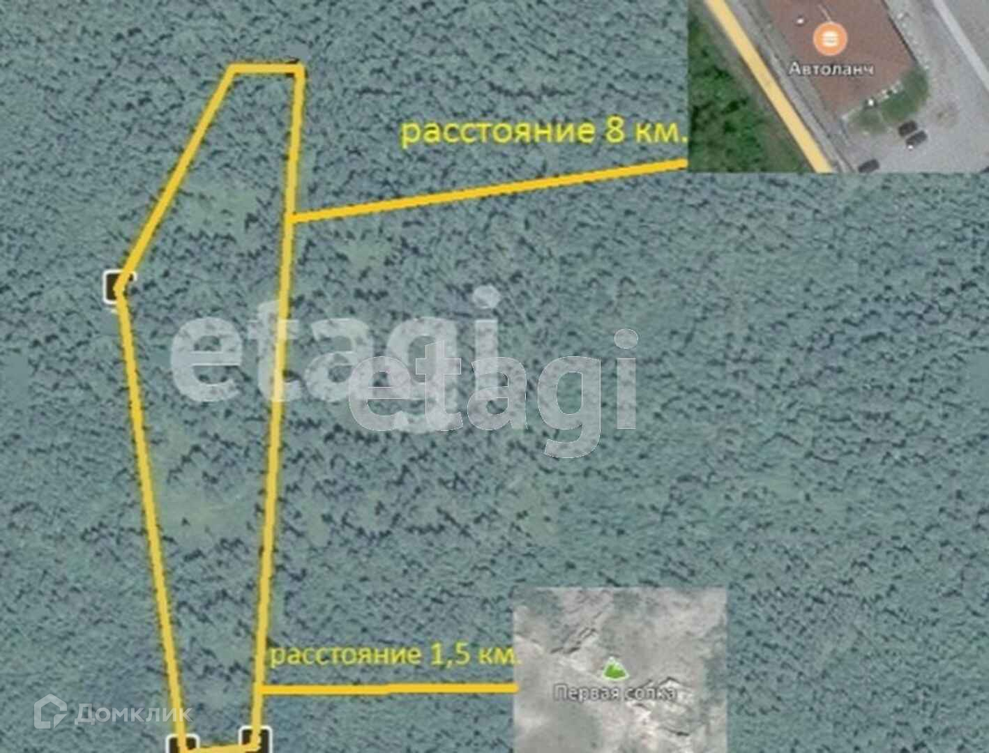 Площадь участка составляет 470 соток. Расстояние до кафе Автоланч расположенного на трассе М5 8 километров, до горы Первая сопка примерно полтора километра.