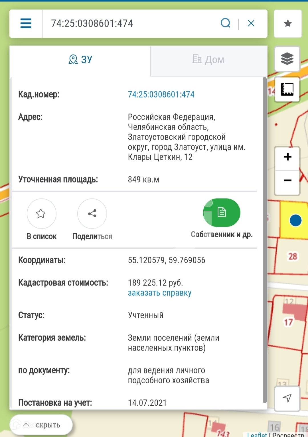 Участок в СНТ, 8.5 сот. на продажу в Златоусте