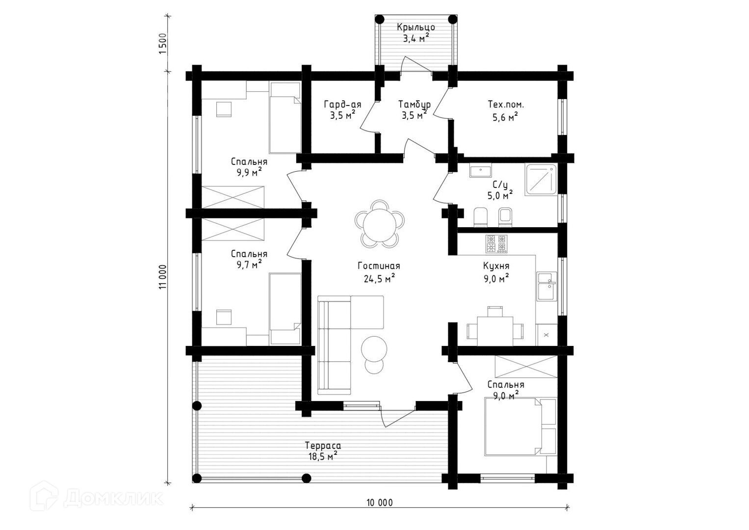Представленный проект дома из оцилиндрованного бревна.