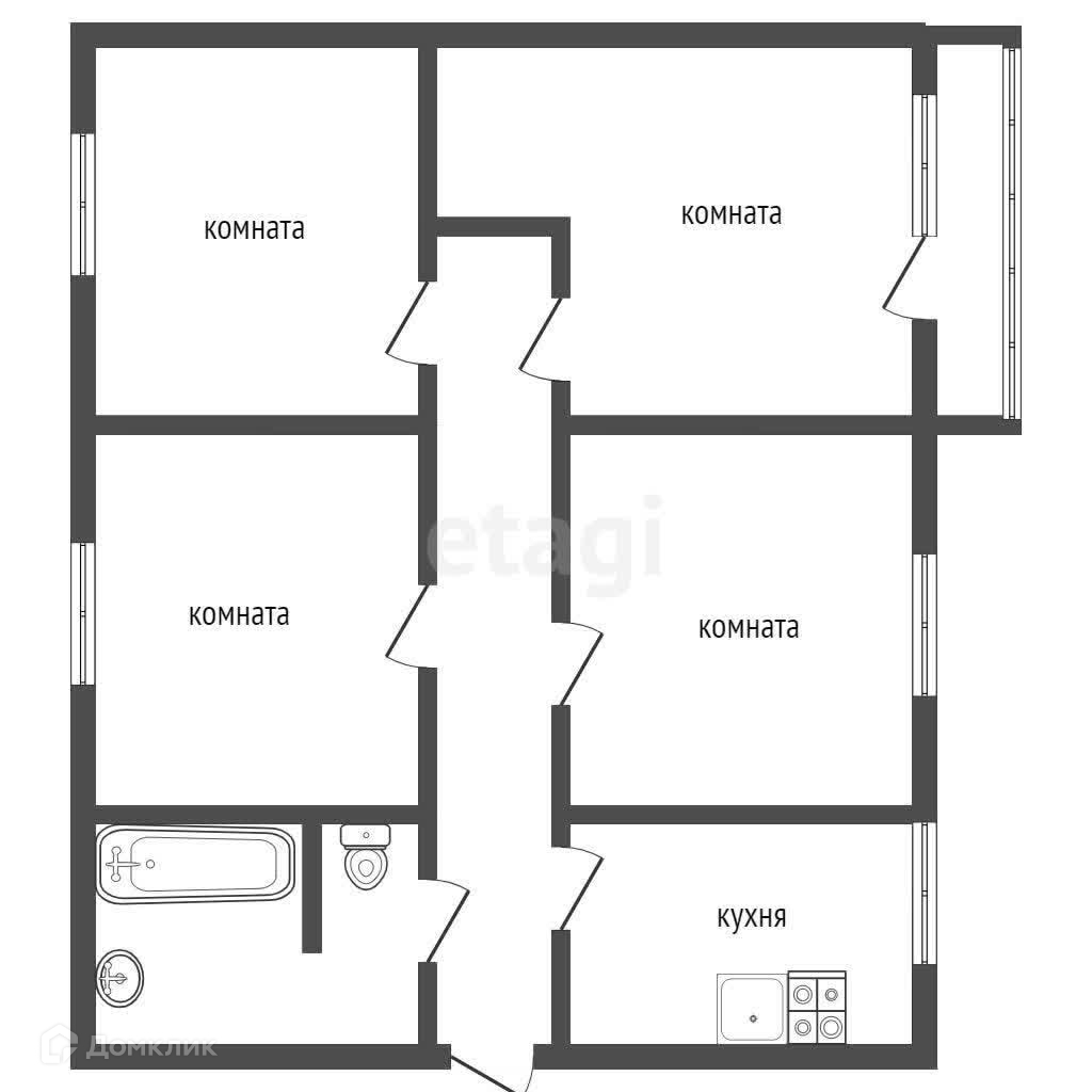 Комната находится в 4-х комнатной квартире. Кухня и туалет с ванной общего пользования.