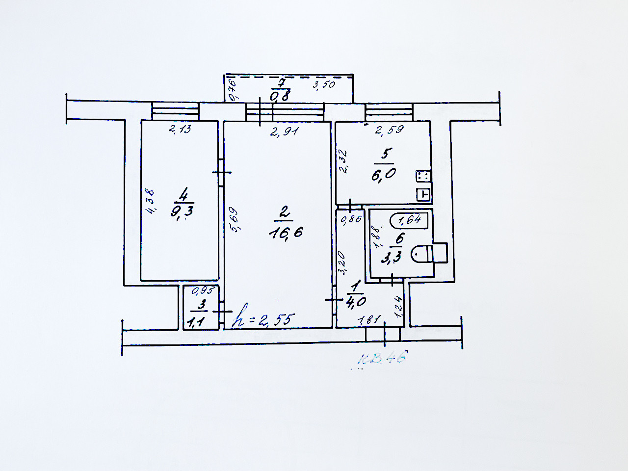 Высота потолков 2.55 м