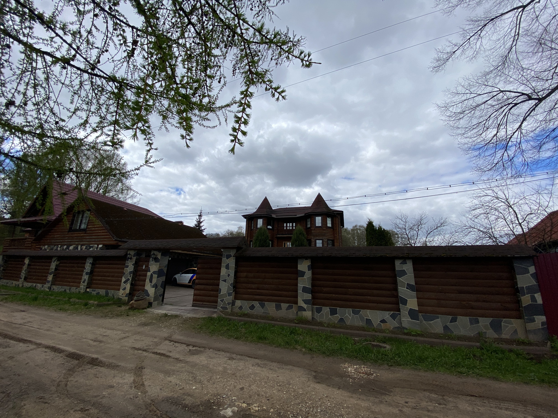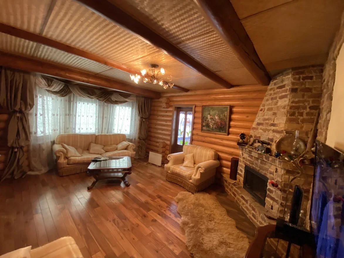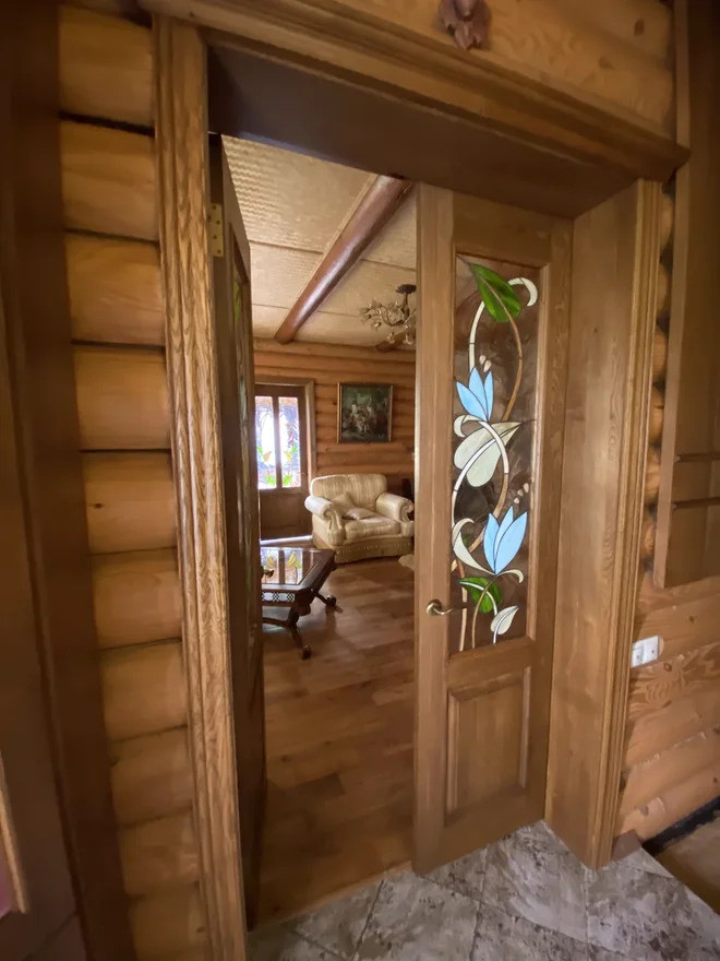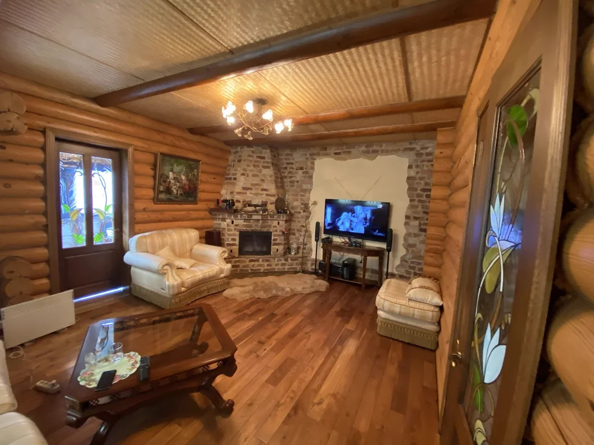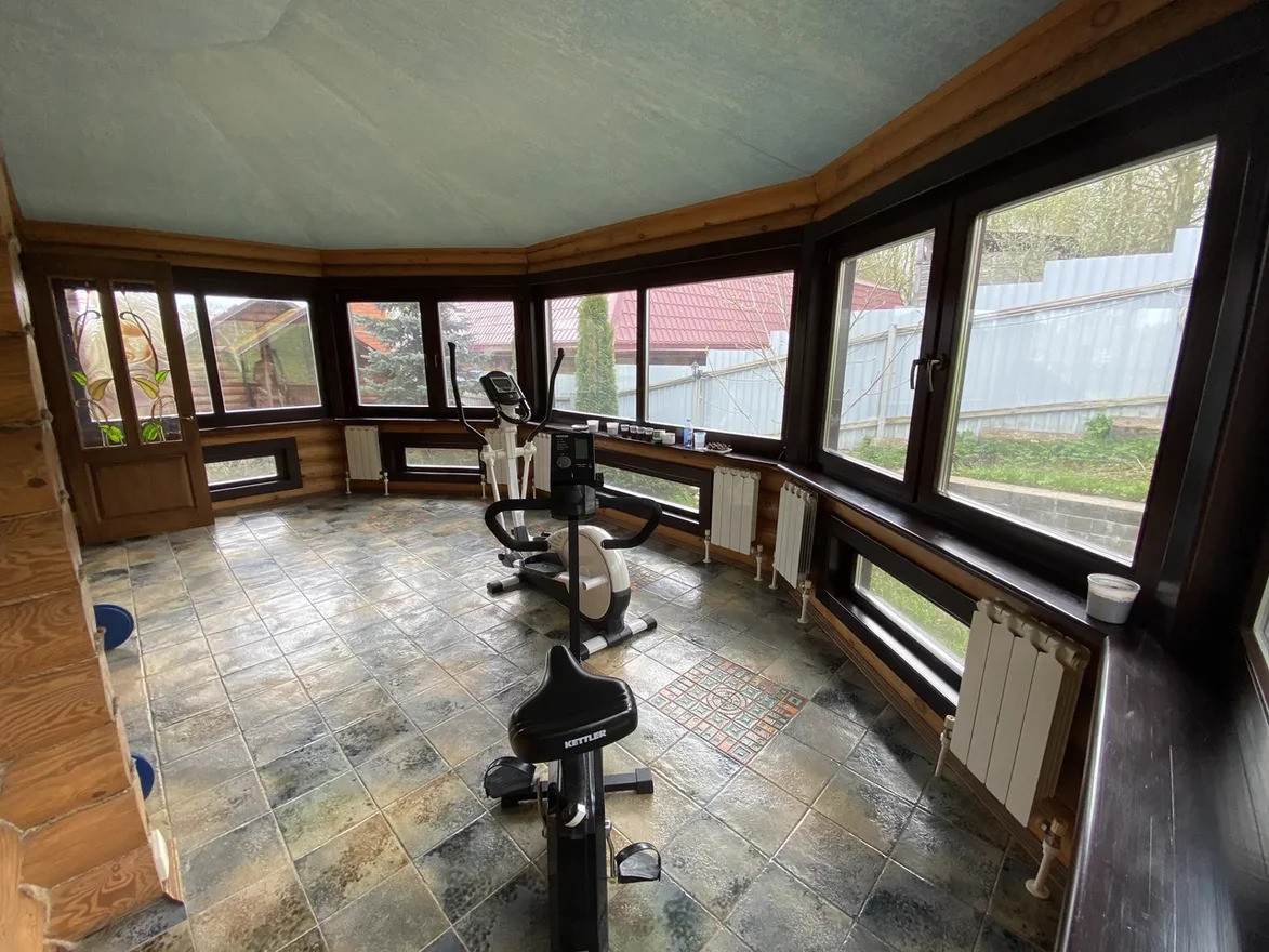 Жилой дом построен из обработанного оцилиндрованного бревна Карельской сосны. На первом этаже дома находится кухня, столовая, гостинная с камином из натурального камня, зимний сад, ванная комната с техникой Villeroy & Boch, Miele и коридор-гардеробная. Под плиткой установлен тёплый пол. На внутреннюю часть дома выходит открытая веранда.