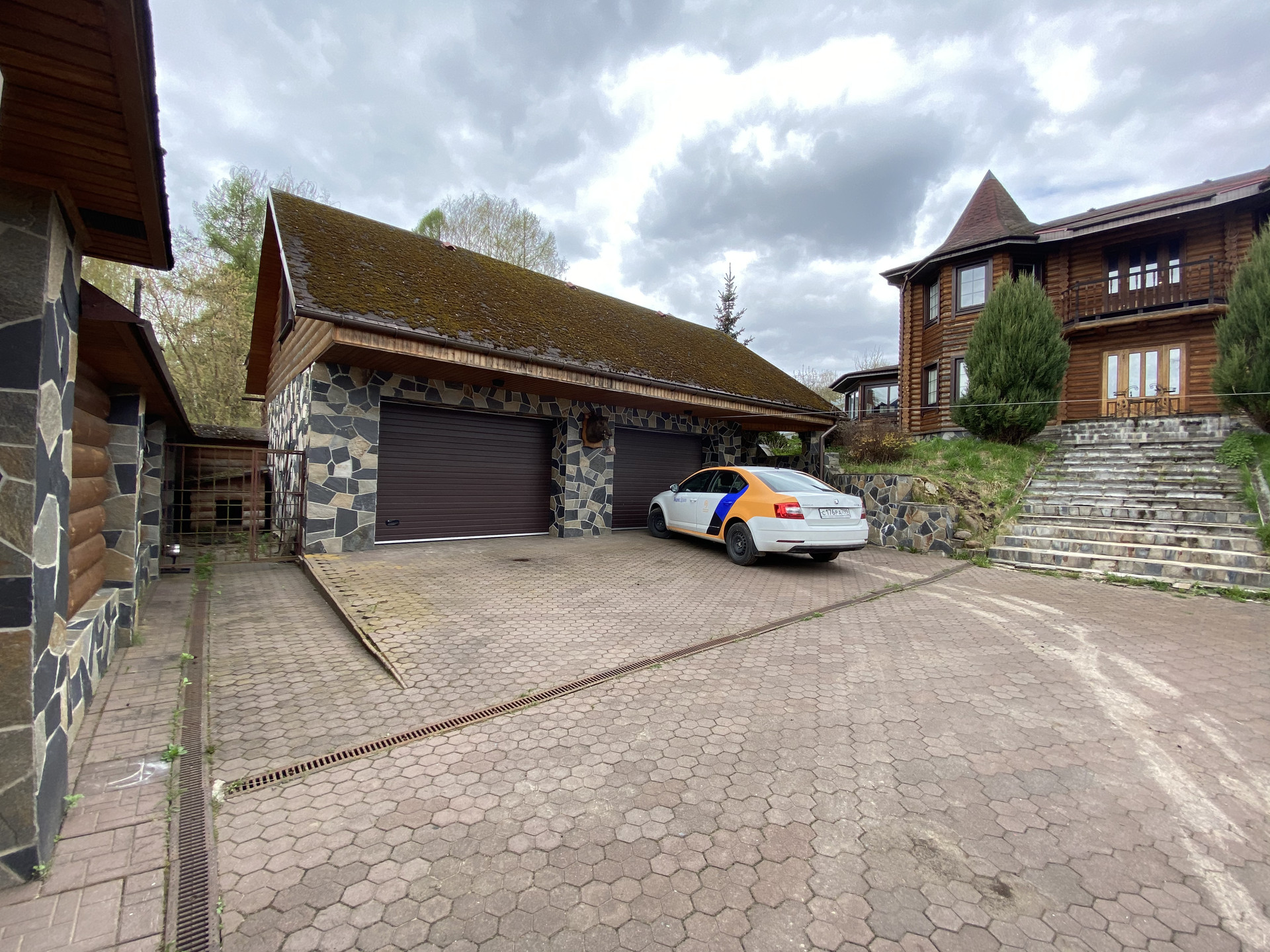 На территории участка находится тёплый гараж на 2 машиноместа, с жилым мансардным этажом с отдельным входом ( ванная комната и кухня-студия) и полностью укомплектованной мебелью и техникой.