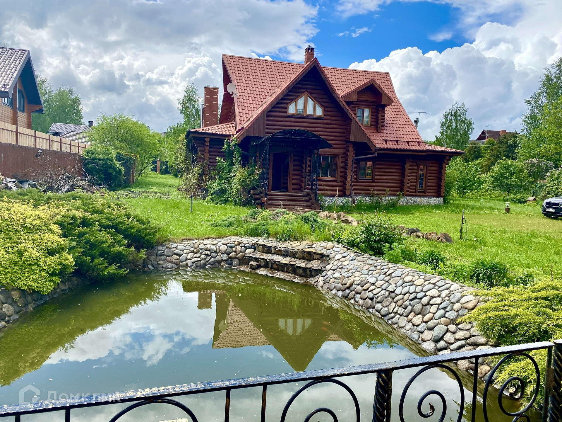 На территории участка облагороженный пруд с рыбками, зона барбекю, где можно прекрасно провести время с друзьями, плодовые деревья, парковка на 8 м/м. Рядом с домом  гараж на 1 м/м, на втором этаже полноценная обустроенная квартира для обслуживающего персонала. Территория участка позволяет развернуться более масштабно. Один собственник. Свободная продажа! Полная стоимость в договоре. Документы на дом и на землю оформлены.