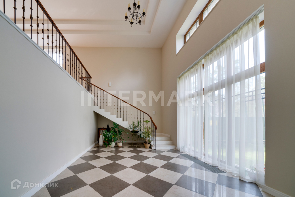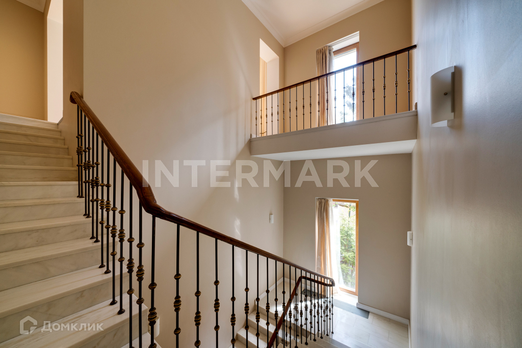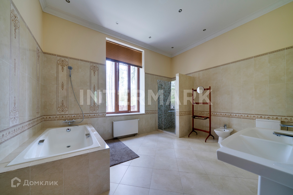 полуторный этаж: спальня гостевая с с/у, бильярдная ( библиотека); 2 уровень - холл, гардеробные с/у и 3 спальных блока, состоящие из холла, спальни, кабинета и с/у. Дом расположен на участке общей площадью 23 соток. Территория благоустроена: есть газон, ландшафтный дизайн. В доме есть комфортная SPA-зона с сауной. В КП Надежда современные инженерные коммуникации: газоснабжение - магистральное, выделенная мощность электричества 65 Квт, водоснабжение - централизованное, канализация - центральная. Планировка объекта предусматривает гараж в контуре дома. В коттеджном поселке круглосуточная охрана.