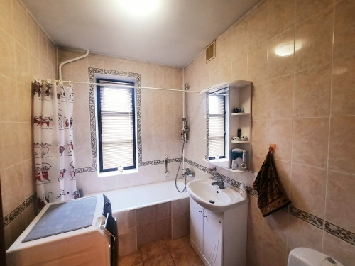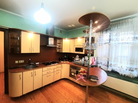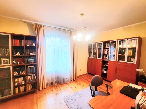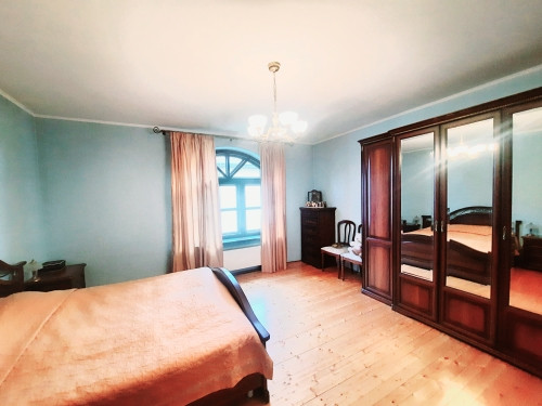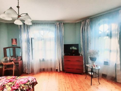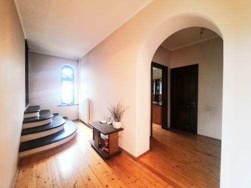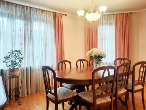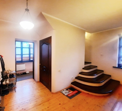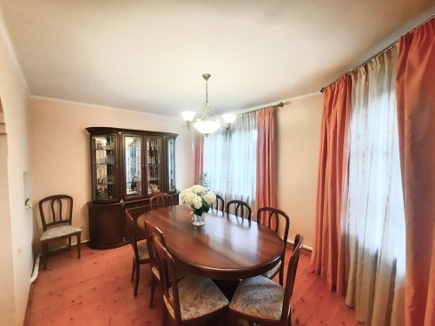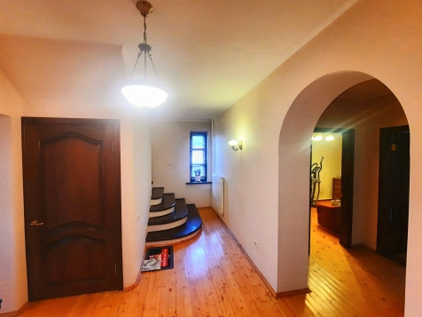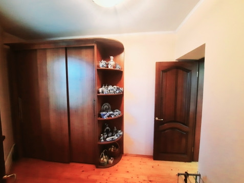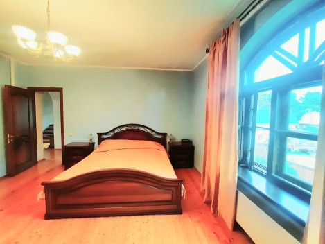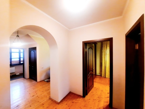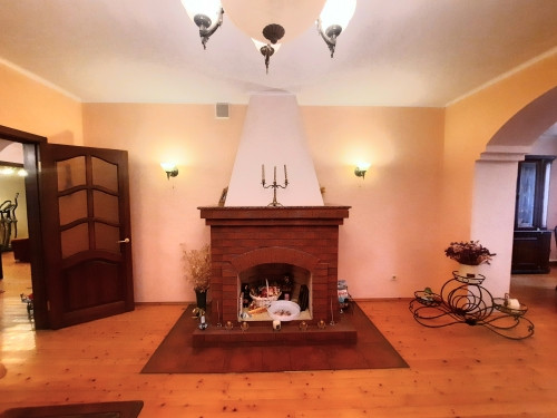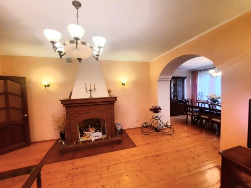 На 1-ом этаже: прихожая, холл с арками 10,5 м2, гостинная с камином 21 м2 и обеденной зоной в эркерной части 23 м2, кухня 22 м2, с/у с ванной, комната 14 м2 . На 2-ом этаже: 4 жилые комнаты (S=23 м2/ 22 м2/ 21 м2/ 14 м2), одна из них с камином, холл и лоджия 6,4 м2, с/у с душевой кабиной. Все помещения меблированы, мебель остается по договоренности. Стены комнат окрашены в светлые тона.