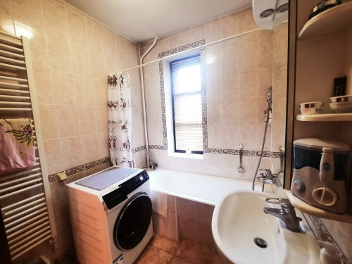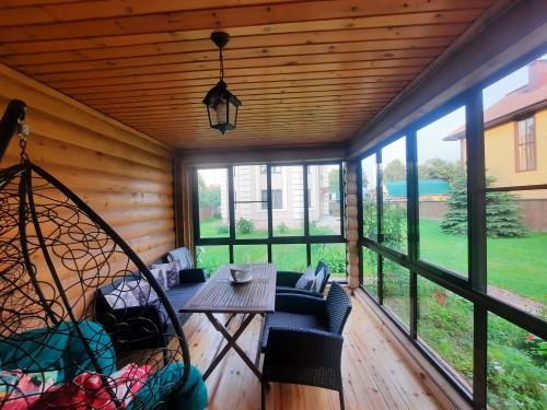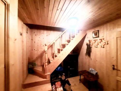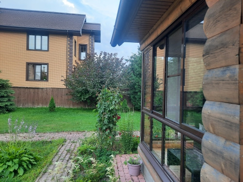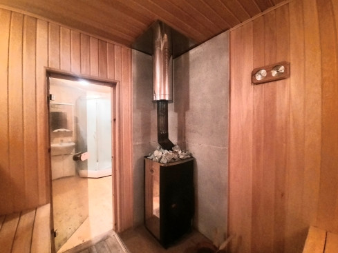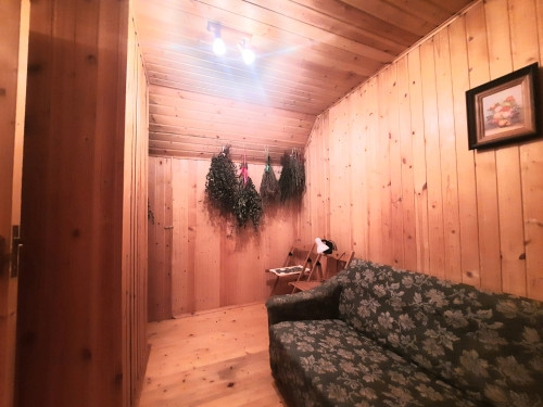 На участке расположен гостевой дом- баня из бревна с остекленной верандой. Оснащен коммуникациями, имеется кухня, с/у с душевой кабиной, сауна с финской дровяной печью Kastor, комната отдыха. На 2-ом этаже жилое помещение.