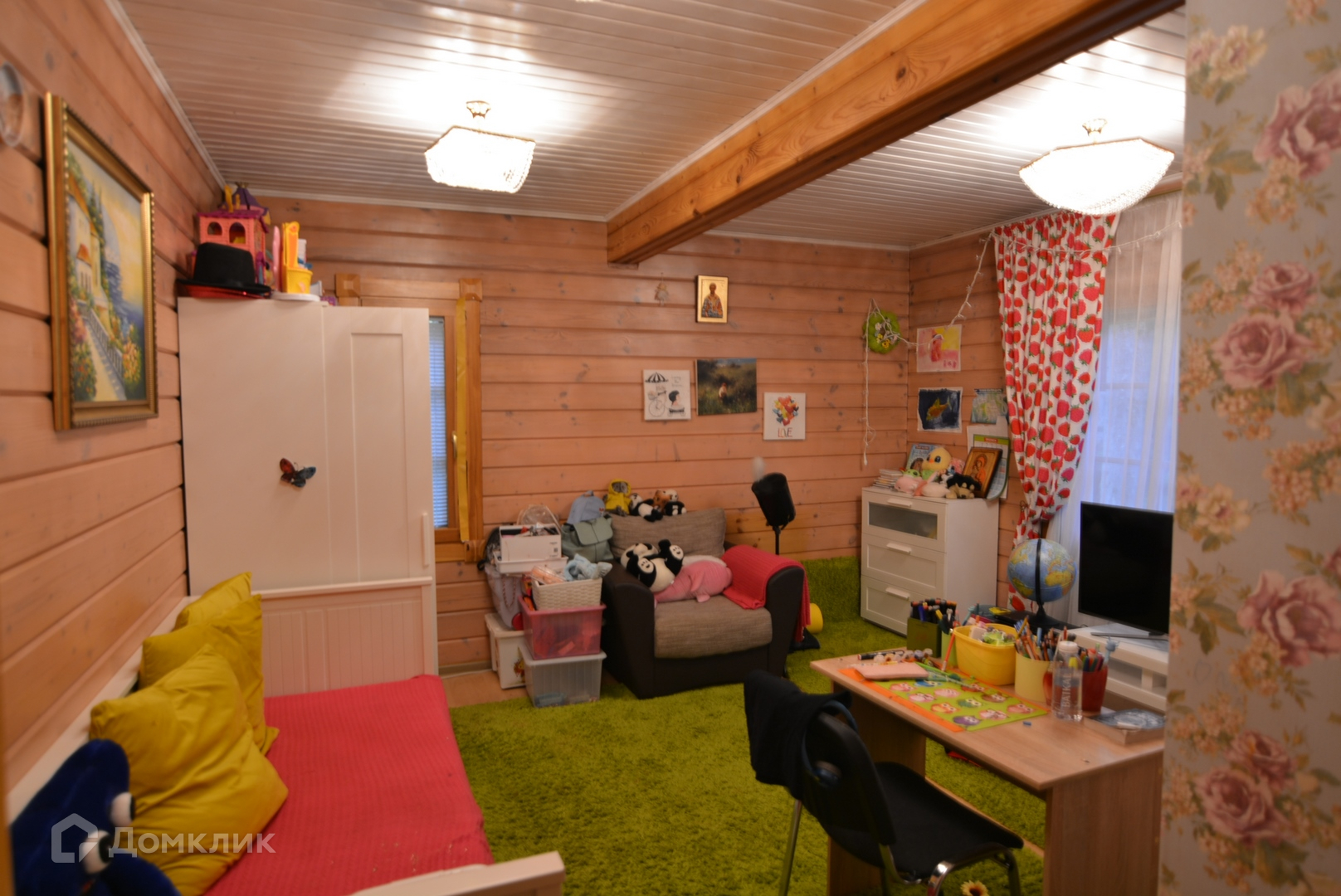 ID: 20234 Прекрасный дом из клеенного бруса на лесном участке в поселке дома отдыха Поречье. В доме грамотно распланированы 4 спальни, гостиная с камином и вторым светом, летнее патио, площадка-барбекю. Навес для машин и детская площадка. А также сарай для инвентаря и вольер для Хаски.