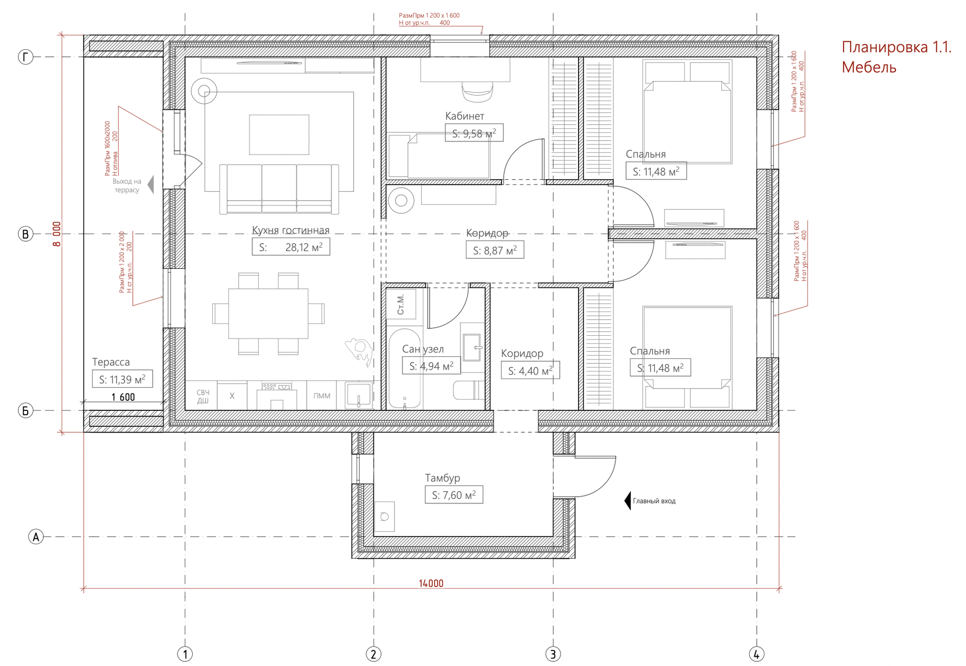 Общая площадь 98 м2