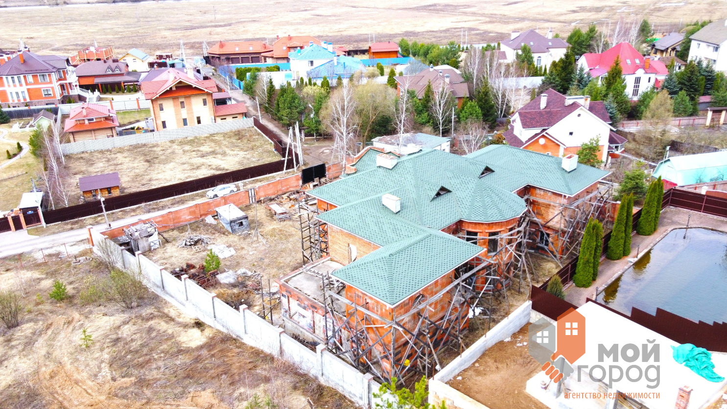 Дом из кирпича с бассейном, фундамент монолит плита.