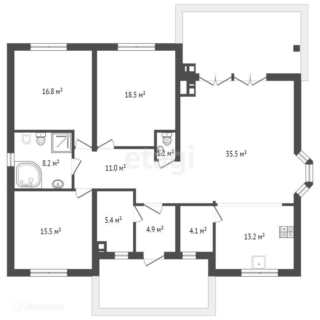 Площадь дома без учета террасы – 134 кв.м. , на участке – 5.7 соток.