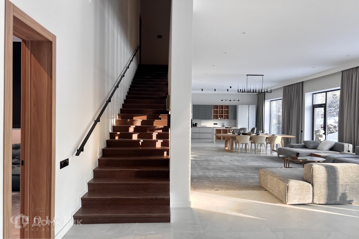 Новый современный дом в скандинавском стиле площадью 775 м² построен на лесном участке 30 соток. Фасад выполнен по проекту архитектурного бюро WELL DESIGN, облицован клинкерным кирпичом и лиственницей. Благодаря панорамным окнам в пол и потолкам высотой 3,5 метра на первом этаже и 4,5 метра на втором пространство наполнено воздухом и светом. В коттедже выполнена современная отделка, полы выполнены из керамогранита и паркетная широкополосная доска из дуба. Дом укомплектован бытовой техникой NEFF, Bosch и Liebherr, мебелью Boca Room, Dantone и итальянской сантехникой. Планировка дома включает 3 спальни и мастер спальня с гардеробной и ванной комнатой, гостиную с камином, кухню-столовую, кабинет, веранду и зону барбекю. Предусмотрены блок для персонала с гостиной и спальней и гараж на 2 машины. На участке можно обустроить беседку или баню в окружении сада.