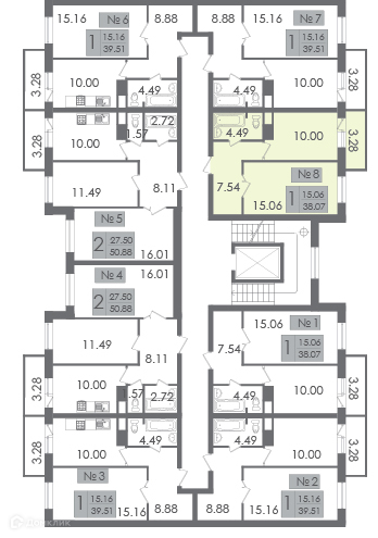 Общая площадь 38.1 м2