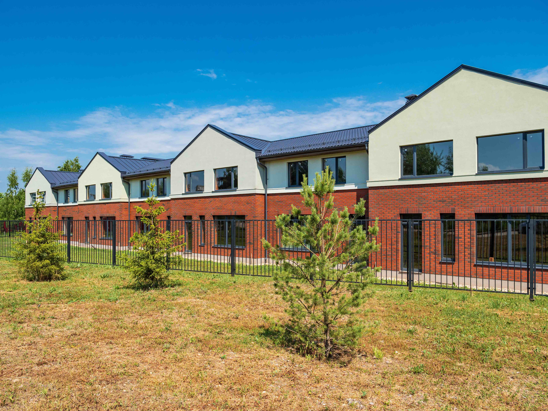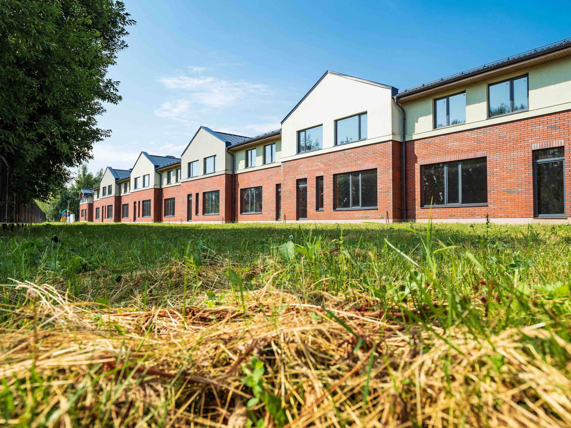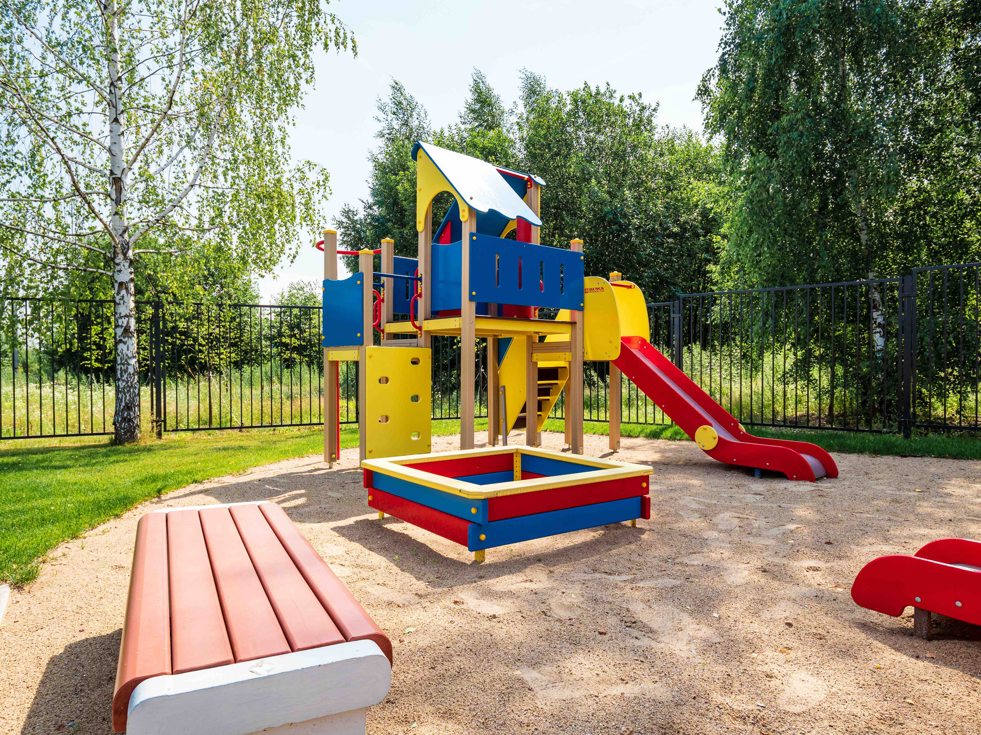 Закрытая территория посёлка полностью благоустроена: ухоженный газон, благородные ели, красивое наружное освещение. Есть детская площадка и зона отдыха. Работает круглосуточный пост охраны.