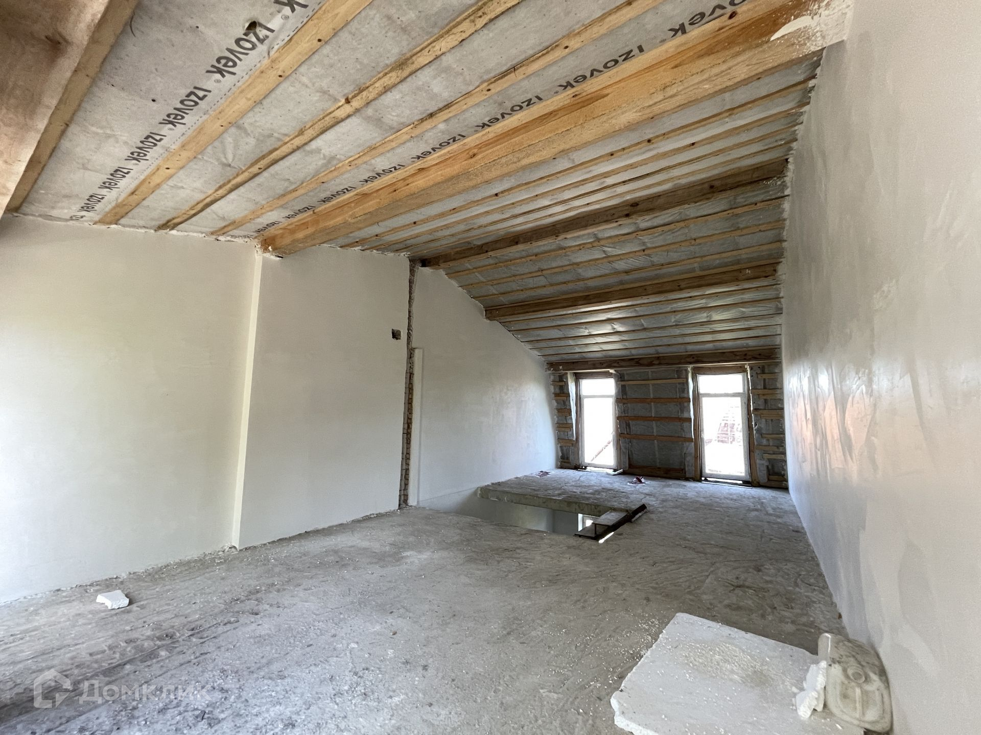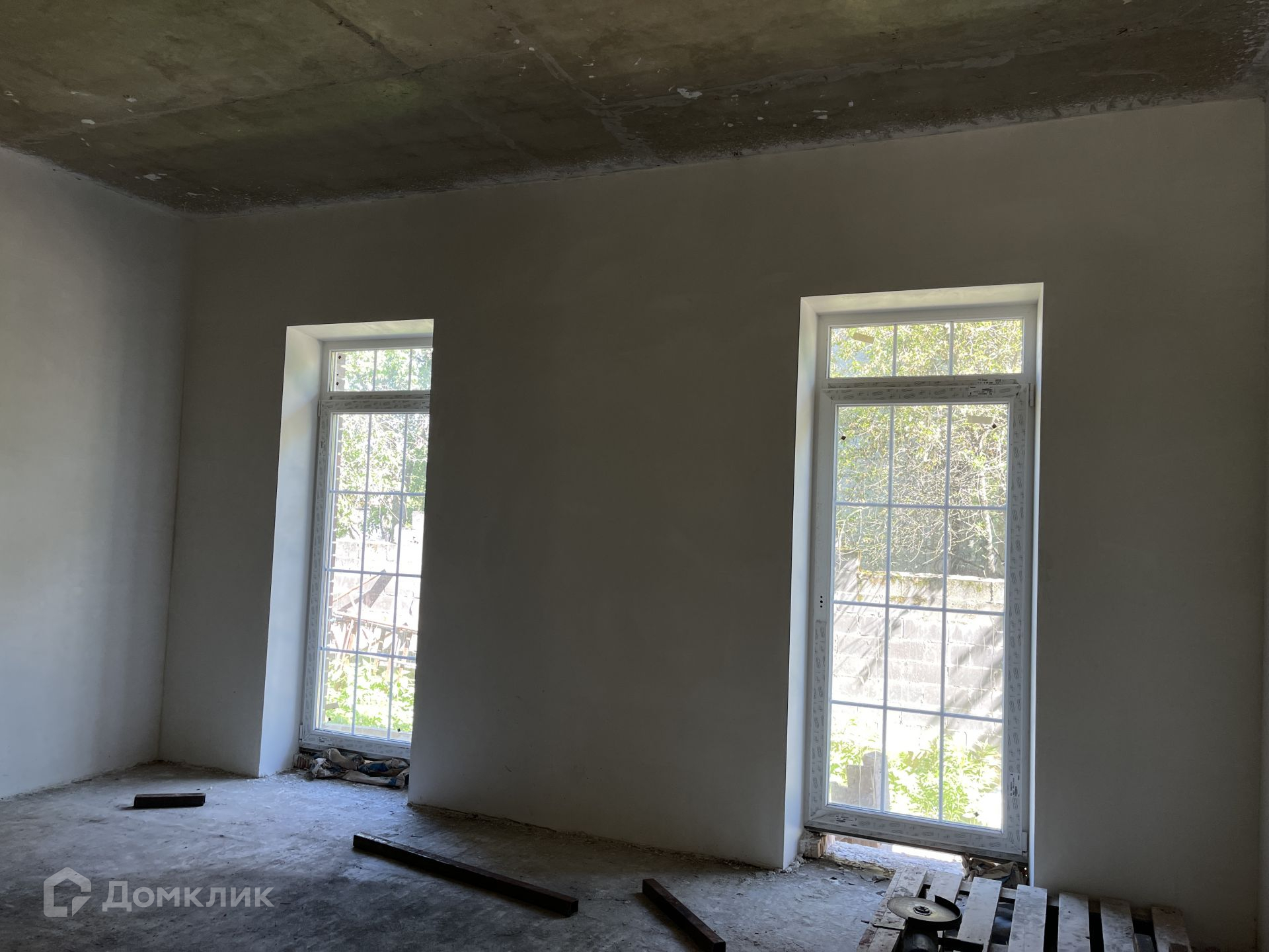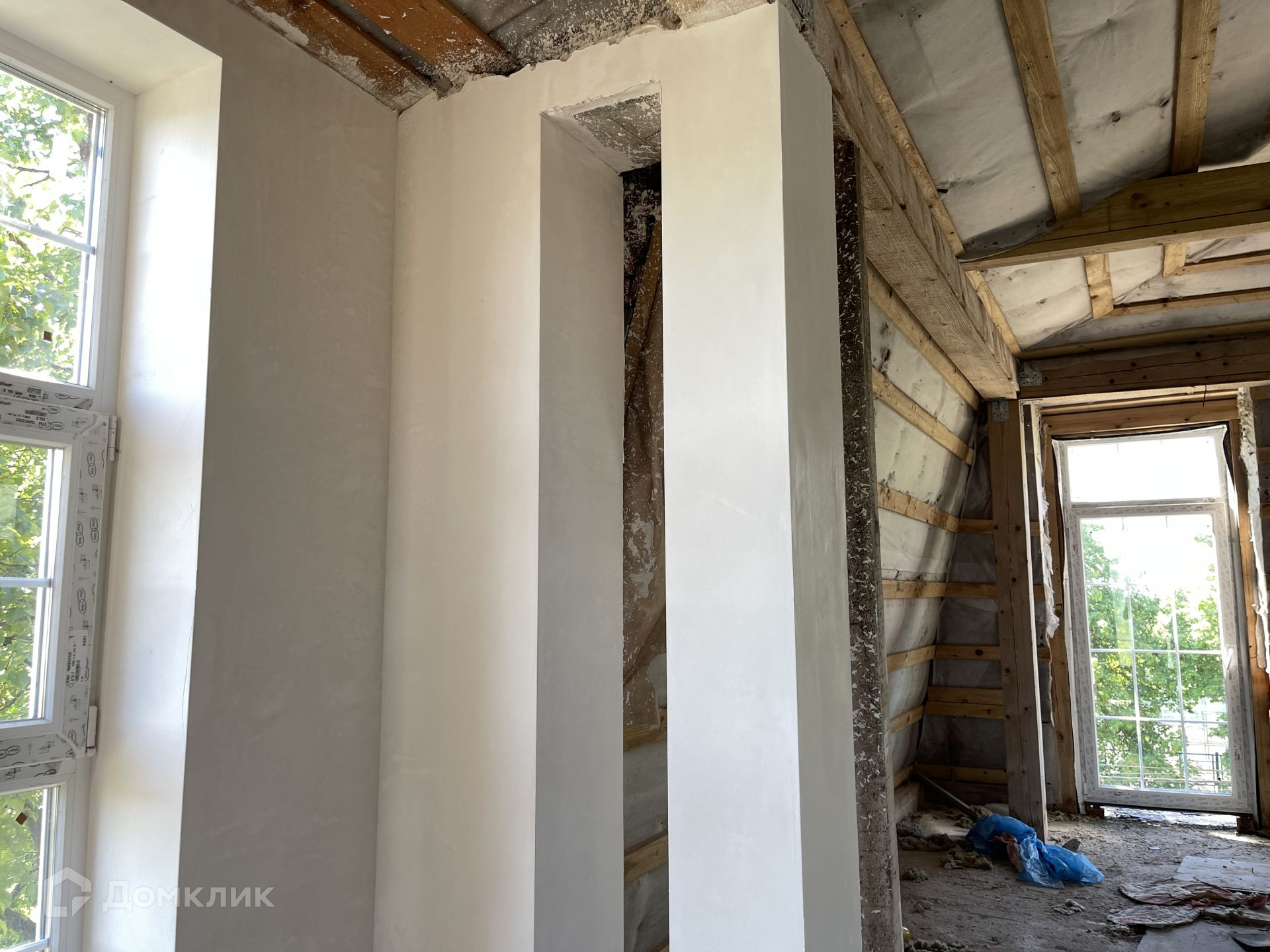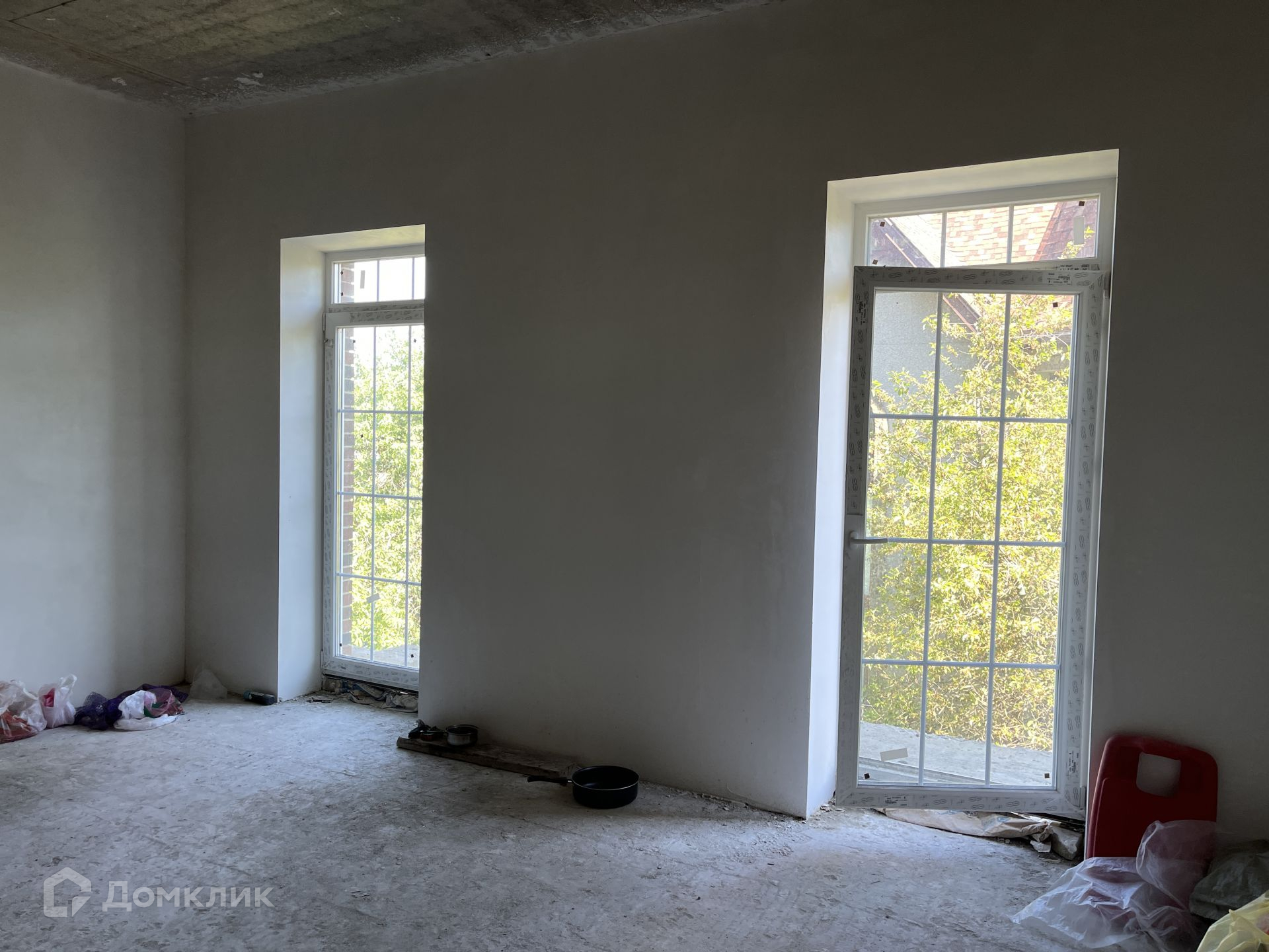 Каждый собственник делает себе ремонт в том стиле, котором захочет. Сделана штукатурка стен под обои. Для покраски стен нужна финальная шпаклёвка. Также нет стяжки пола. После заливки пола (7-10 см) остаётся 3.06 метра потолки. Весь мусор на фото будет убран, поскольку будут облагораживать территорию и делать площадку перед входом.