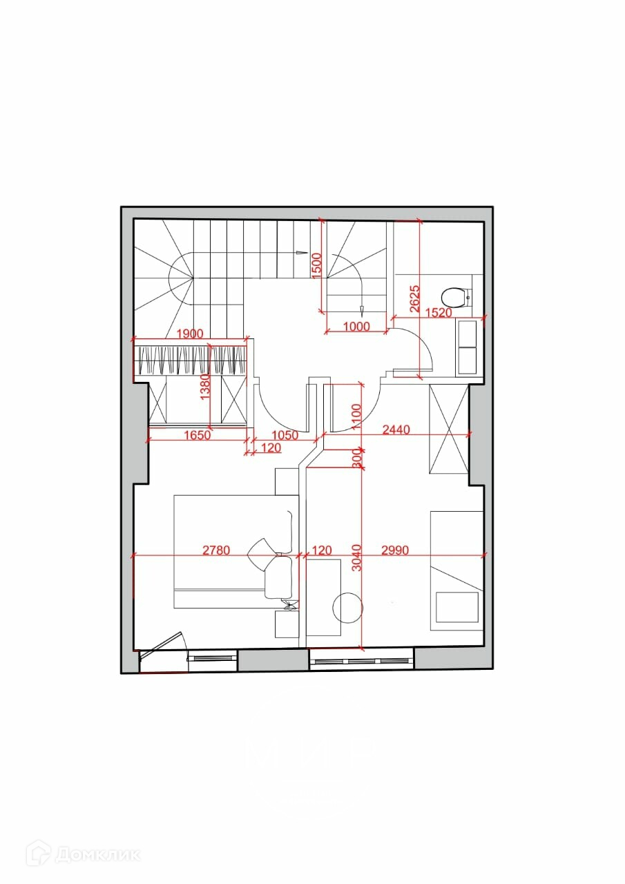 2 уровень: 2 спальни: 13 кв.м. и 12,5 кв.м., душевая 4 кв.м., лоджия 4 кв.м.;