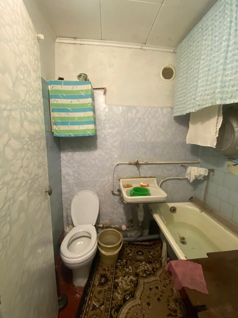 Санузел совмещен. Есть вся необходимая сантехника, счетчики в порядке.