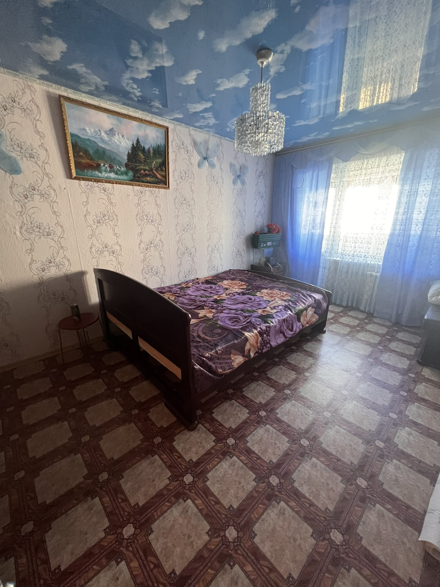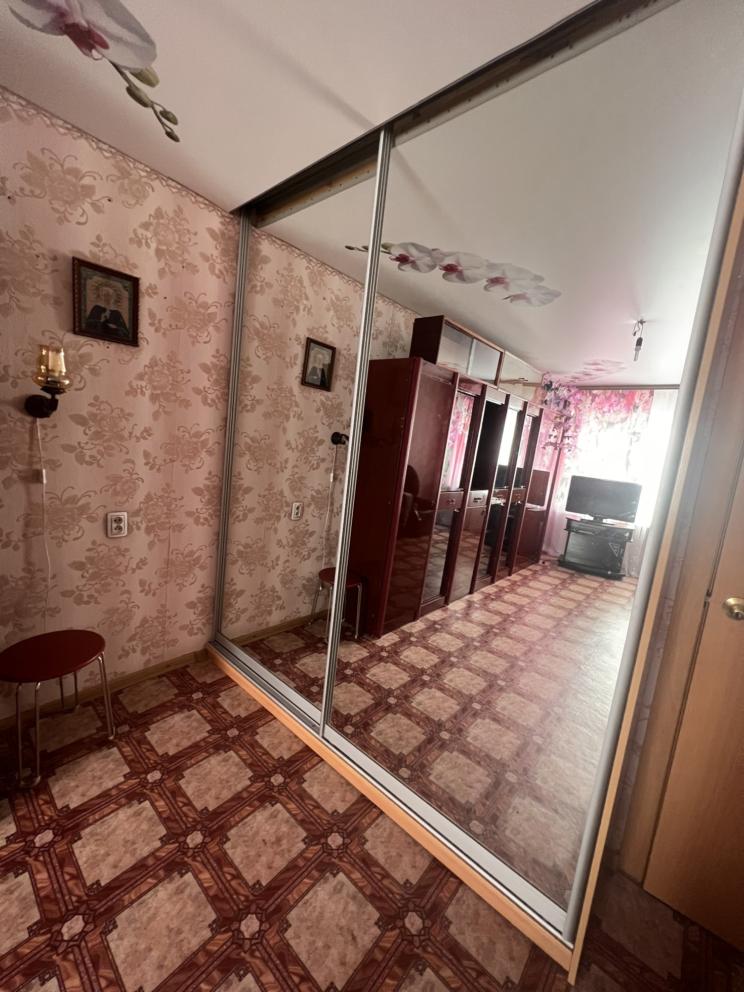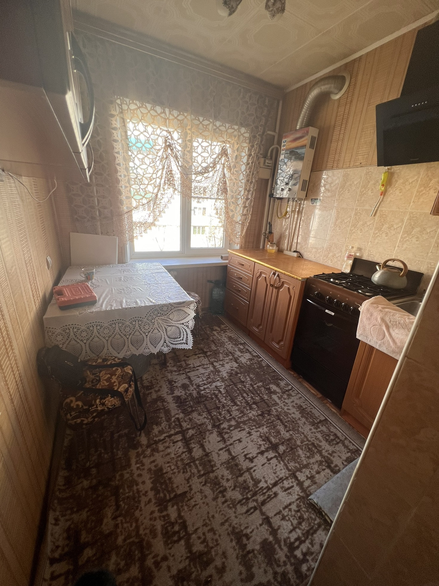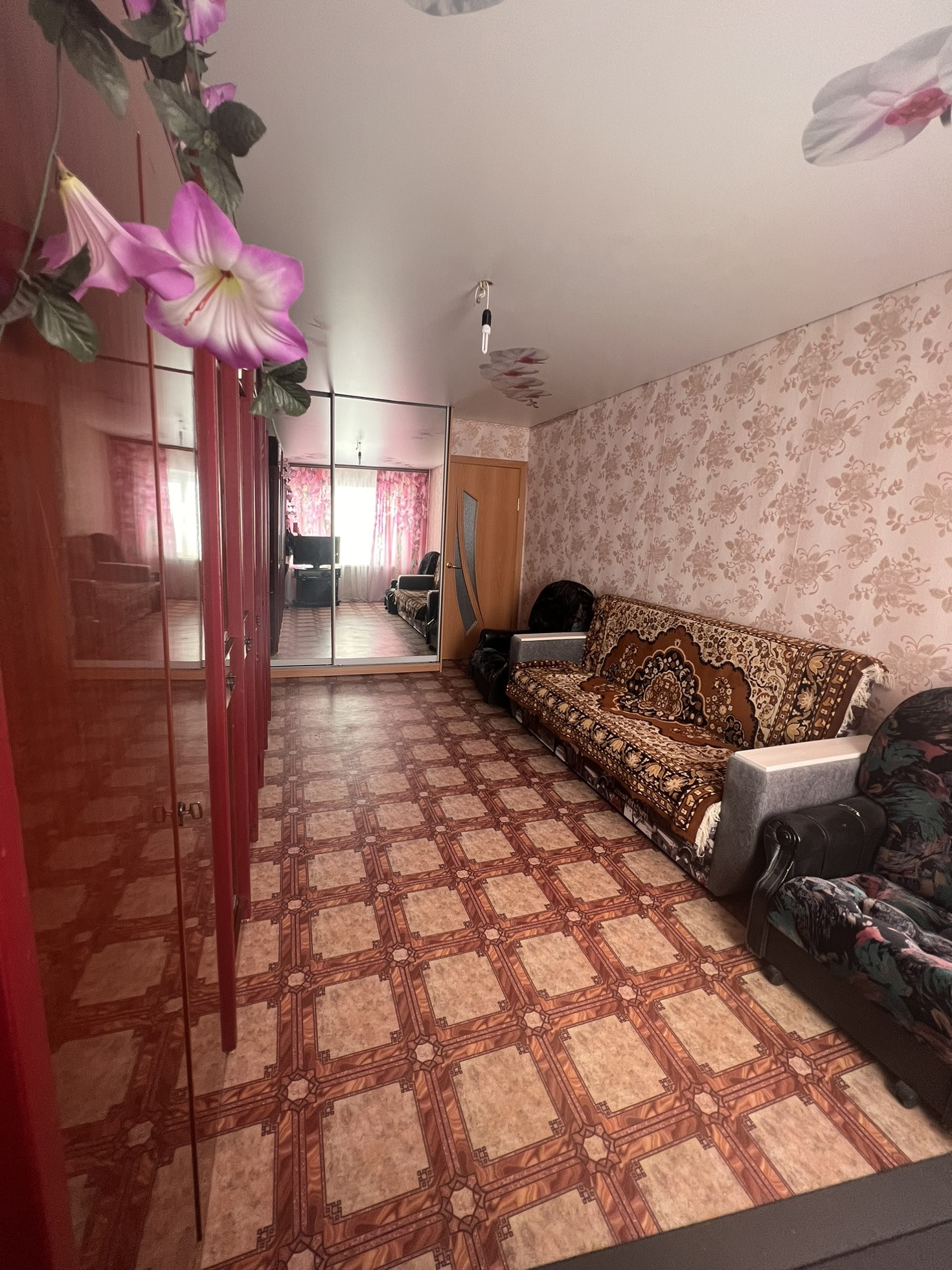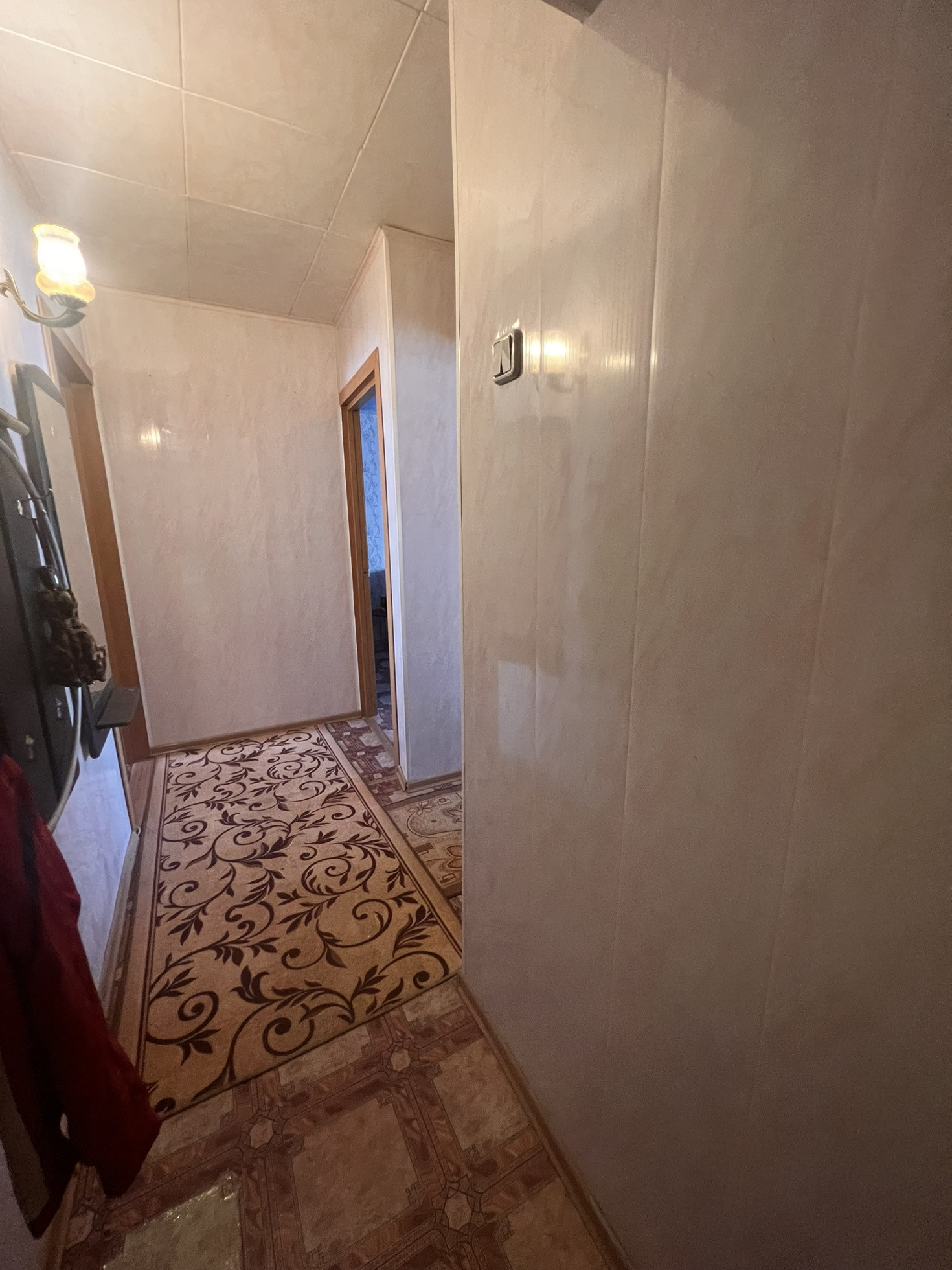 Окна выходят как во двор, так и на другую сторону , самое удобное расположение комнат ( бабочка) , сан узел совмещен, полностью плитка, натяжные потолки , на полу в комнатах линолеум, металлопластиковые окна, новая газовая колонка, новая газовая плита, на все стоят счётчики, балкон застеклен, два встроенных шкафа, мебель остаётся частично по договорённости, стиральная машинка,2 телевизора, даже немного посуды ,если нужно, состояние, заходи и живи.