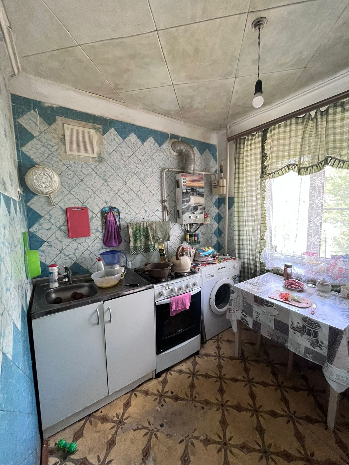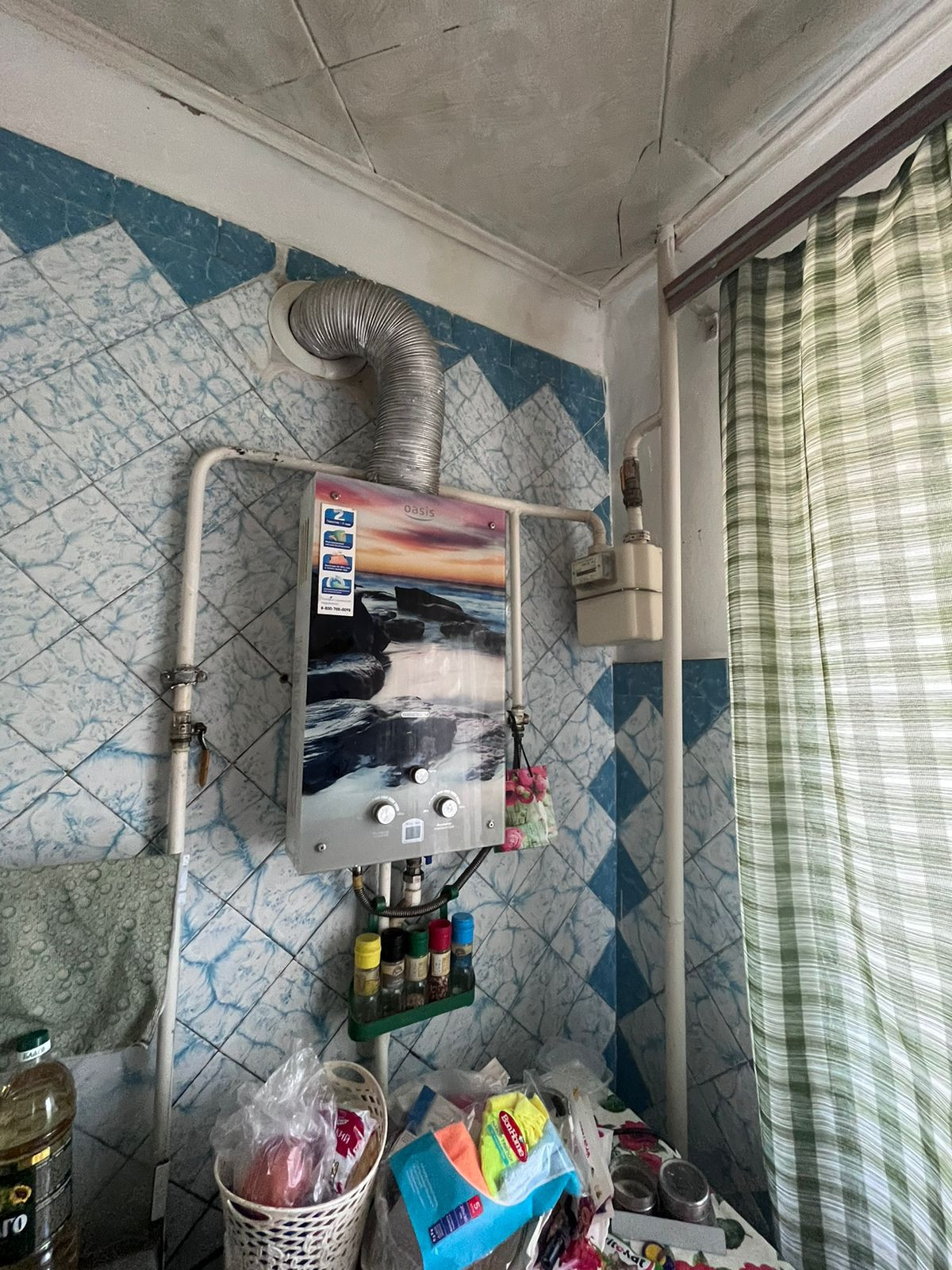 КУХНЯ: газовая колонка, газовая печь, обеденный стол.