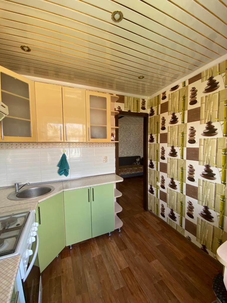 В квартире косметический ремонт: на стенах обои, на потолке потолочная плитка, на полу- линолеум.