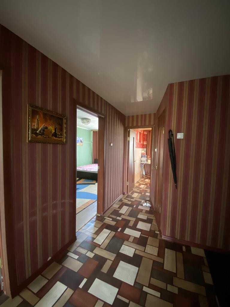 Квартира с косметическим ремонтом, на полу в жилых комнатах - ламинат, в коридоре и кухне - линолеум. Натяжной потолок в двух жилых комнатах и коридоре. В 1 спальне и кухне, на потолке- плитка ПВХ.