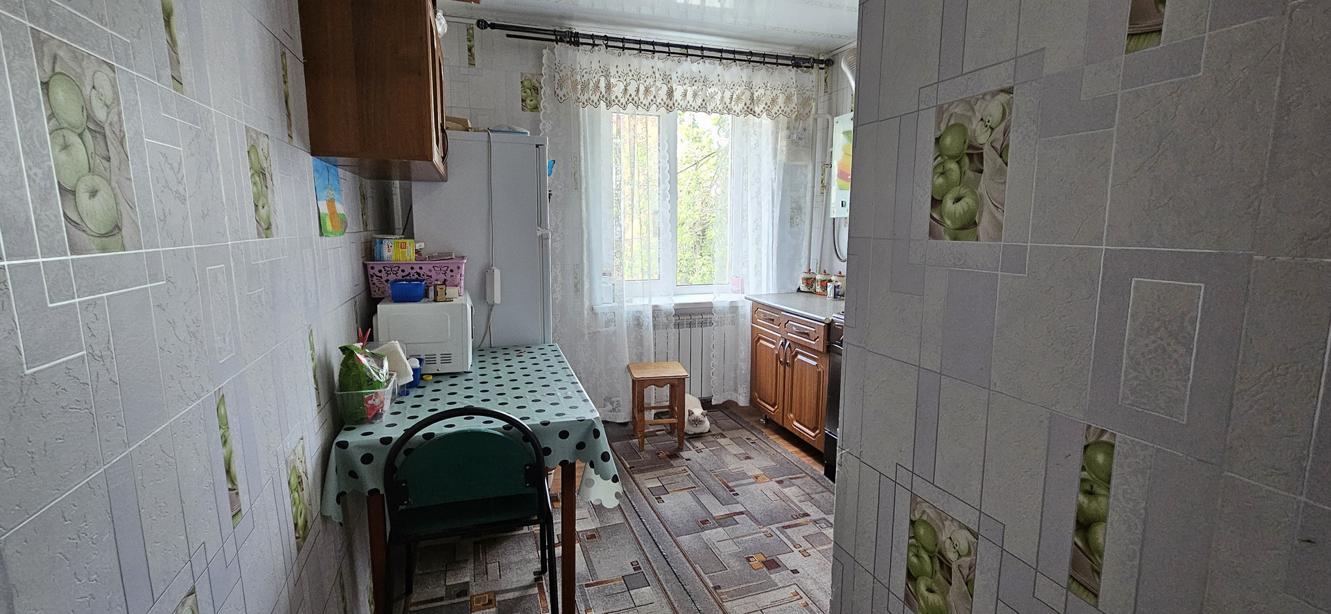 В квартире остается кухонный гарнитур, газовая плита, газовая колонка.