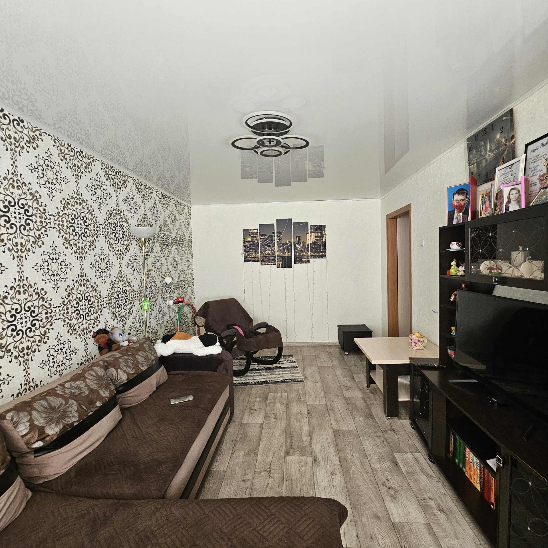 В квартире из мебели и техники остается: кухонный гарнитур, прихожая, стиральная машина, шкаф-горка, диван, шкаф, один телевизор, остальное - по договоренности.